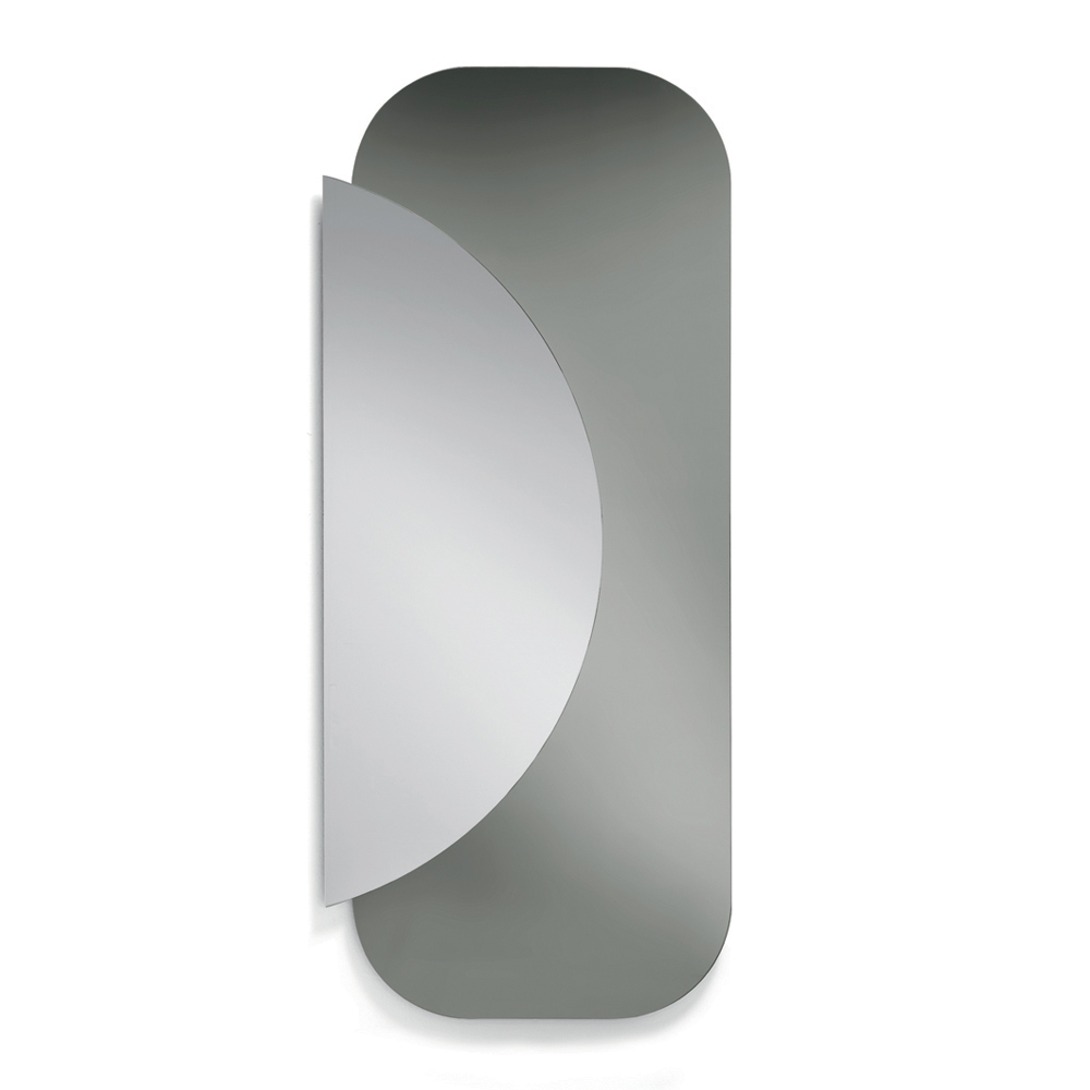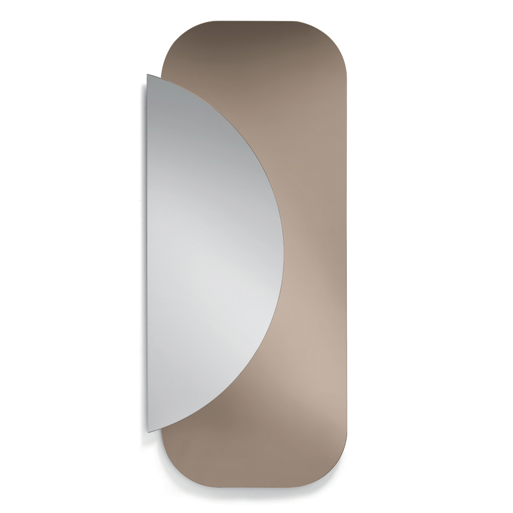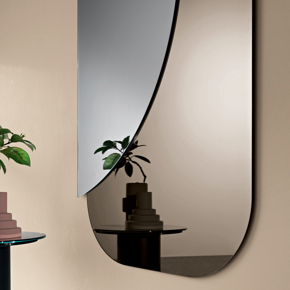 Një pasqyrë elegante me formë, e dizajnuar në Itali , ideale për të zbukuruar me stil hapësira të tilla si hyrja , dhoma e ndenjes ose dhoma e gjumit . Dizajni i saj modern dallohet nga një ndërthurje e rafinuar e formave që mbivendosen, të cilat i japin thellësi dhe karakter murit.