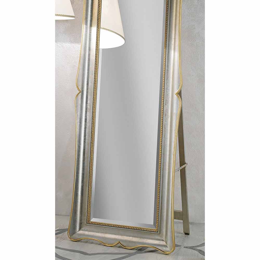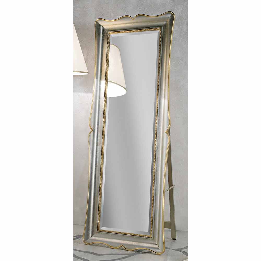 Kjo pasqyrë dyshemeje, me elegancën e saj të përjetshme , është një xhevahir i vërtetë dizajni që kombinon dobinë dhe stilin. Korniza e saj e hollë ka përfundime që nënvizojnë konturet e përdredhura, me një shije që të kujton sharmin e lashtës. Përkulet me hijeshi dhe siguri falë mbështetjes së pasme që garanton stabilitetin e tij.