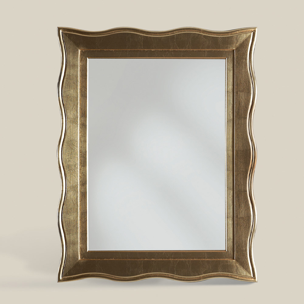 Pasqyrë elegante me stil klasik e punuar me një kornizë të formësuar në fletë ari . Një komplement unik dhe i rafinuar, i bërë tërësisht në Itali nga mjeshtra të aftë , mjeshtër të artit që përfundojnë çdo komplement me mençuri dhe shije për elegancë. Prodhimi kryhet duke përdorur materiale të shkëlqyera , dhe duke kryer punënmedorë me kujdesin dhe profesionalizmin maksimal që i dallon produktet Made in Italy .