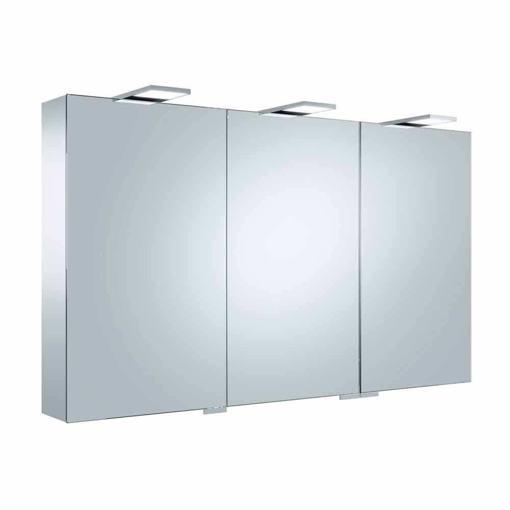 Pasqyrë konteineri me 3 dyer të varura me pasqyrë (gjithashtu të brendshme) dhe pasqyra anësore të pajisura me ndriçim LED.