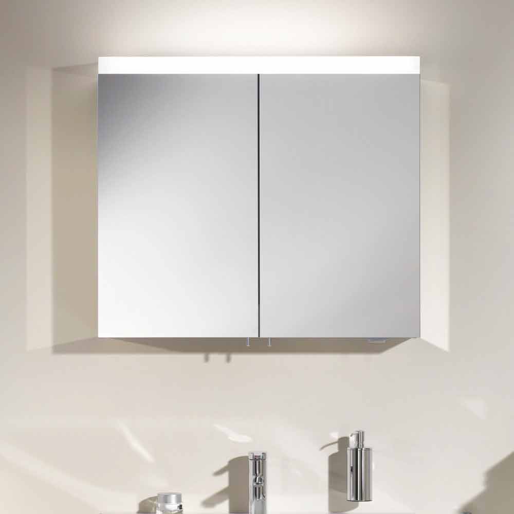 Pasqyrë kontejnerësh për montim në mur e pajisur me 2dyer të varura me pasqyrë (gjithashtu të brendshme) dhe pasqyra anësore. Dizajni i tij duket si një riinterpretim modern i një stili më tradicional i pasuruar nga teknologjia e mrekullueshme inovative LED që e bën produktin edhe më origjinal dhe të rafinuar. Ky lloj ndriçimi lëshon një rreze të ngrohtë të dritës së bardhë, e aftë të krijojë një atmosferë të rehatshme dhe mikpritëse. Së bashku me atë ballore që mbulon pjesën e sipërme të pasqyrës, ky artikull pasurohet nga ndriçimi i poshtëm që nxjerr në pah rubinetat. Ekziston edhe një dimmer praktik rrotullues i pozicionuar poshtë kabinetit që ju lejon të vendosni midis 3 mënyrave të ndryshme të ndriçimit dhe të zbehni intensitetin e dritës. Brenda 2 dyerve të mbyllura të buta ka edhe 6 rafte xhami (2 për secilën derë) të rregullueshme në lartësi sipas nevojave tuaja dhe 2 priza elektrike ideale për të rimbushur pajisjet tuaja elektronike edhe kur dera është e mbyllur.