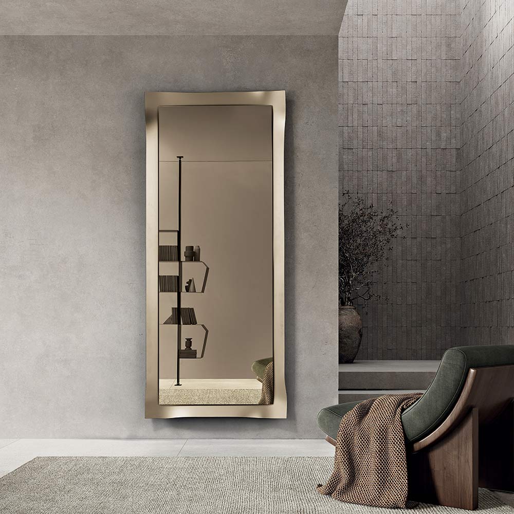 Falë ekuilibrit të saj midis thjeshtësisë dhe rafinimit, kjo pasqyrë bie në sy me elegancë në mur, duke u bërë një aksesor ideal mobilimi për mjedise moderne dhe bashkëkohore, i aftë të amplifikojë shkëlqimin e hapësirës.