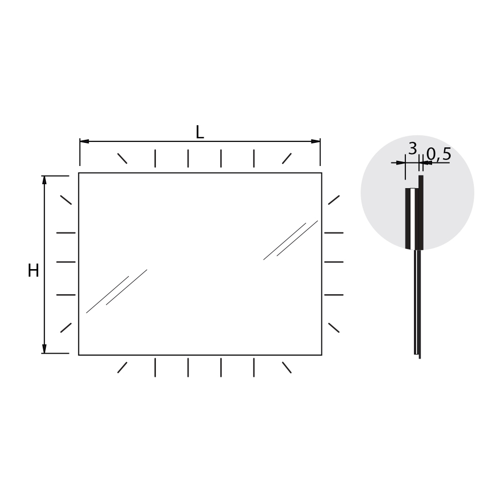 • gjatësia: 70 cm x thellësia: 3 cm x lartësia: 80 cm - fuqia 43 W - lumen 3780 lm