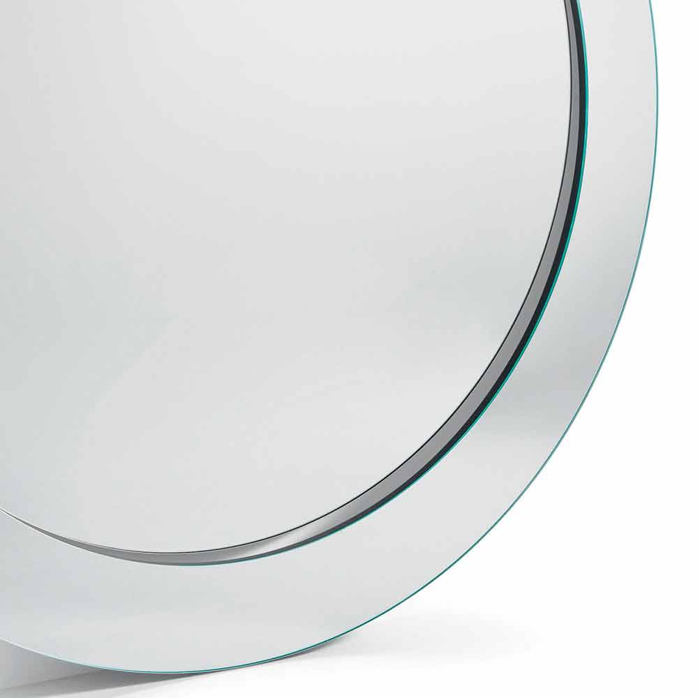 Dizajn modern pasqyrë e rrumbullakët pa këmbë me kornizë të prirur, realizuar në Itali me dorë.