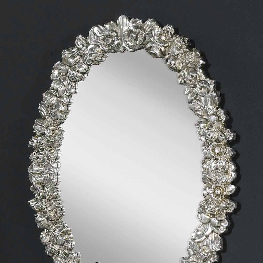 Kjo pasqyrë është një triumf i vërtetë i artit dekorativ , një element arredimi që shndërron çdo mur në një galeri stili. Korniza është një trazirë me lule të skalitura me mjeshtëri, secila e përfunduar në një nuancë që i shton një prekje moderne motivit klasik të lules.