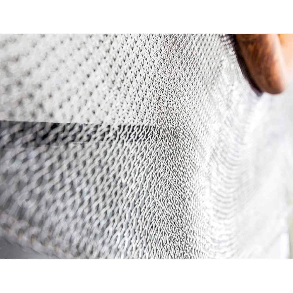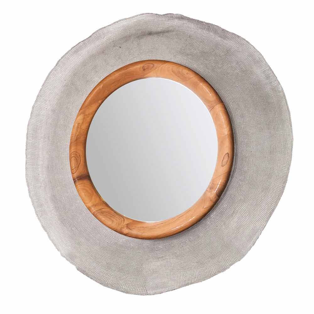 Bërë me një rrjetë metalike të endur me dorë dhe aplikuar përgjatë kornizës së lëmuar prej tik të pasqyrës; rrjeta e telit mund te formohet sipas qejfit tuaj. Falë dizajnit të tij inovativ, elegant dhe të rafinuar, ai mund të vendoset në çdo ambient, nga dhoma e ndenjes deri tek dhoma e gjumit; nga zyra në banjë.