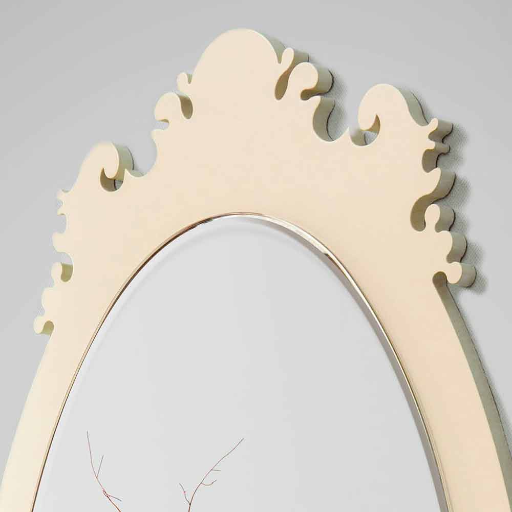 Pasqyrë e murit me model dizajni në dru kafe me prerje lazer të bërë në Itali.