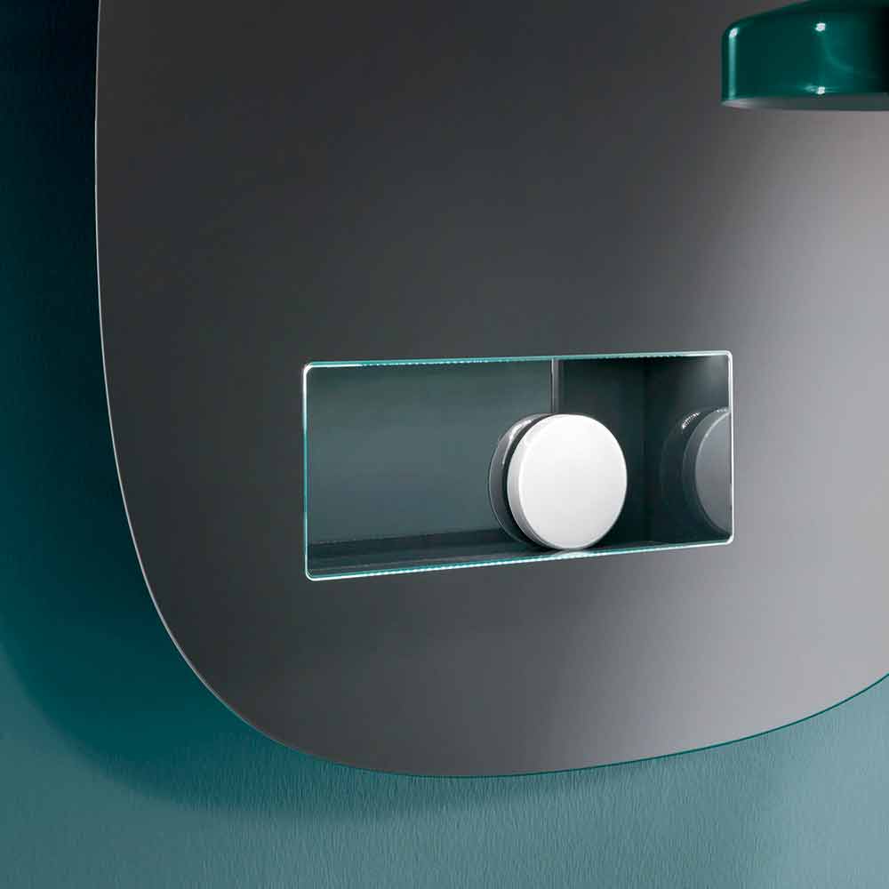 Linjat e buta dhe të rrumbullakosura mirëpresin hapësirën e veçantë dhe praktike të ruajtjes , të llakuara brenda në një fund të zi , dhe të pajisura me një sistem ndriçimi LED me sensorin e lëvizjes.