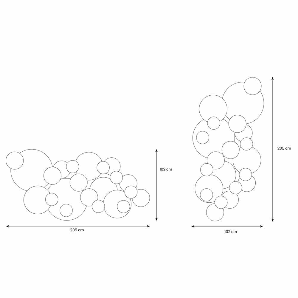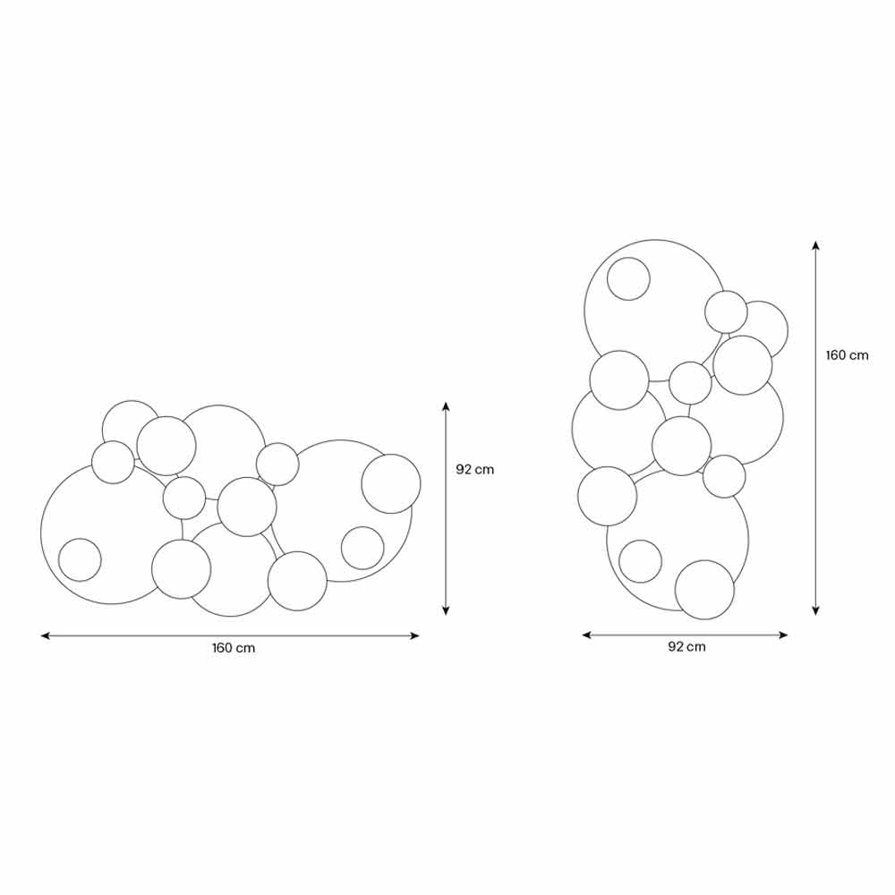 Pasqyra e murit përbëhet nga një seri elementësh rrethorë pasqyrash me madhësi të ndryshme dhe në përfundime të ndryshme : pasqyrë, e tymosur, bronzi, ari, rozë dhe gri.