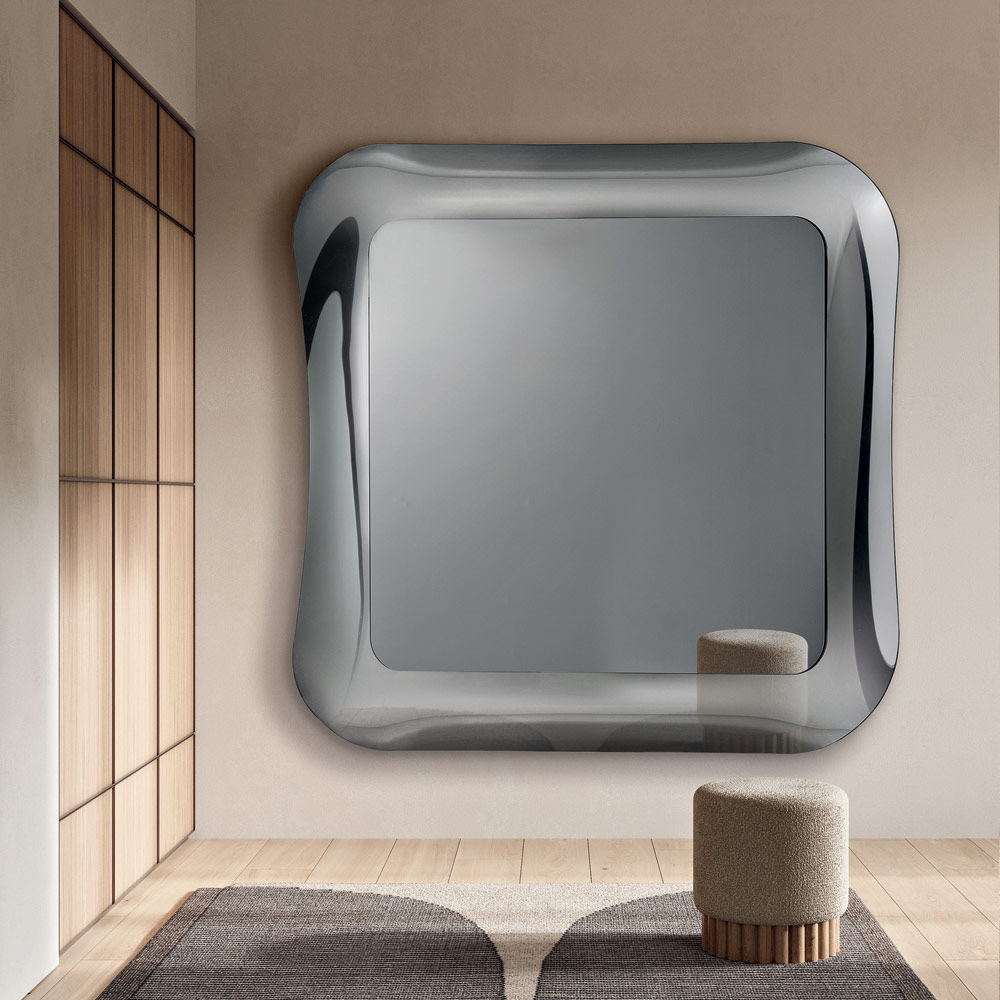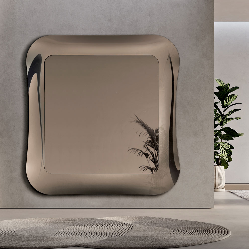 Një pasqyrë elegante muri e projektuar në Itali , ideale për të përmirësuar hapësirat si hyrja , dhoma e ndenjes ose dhoma e gjumit . Dizajni i saj i rafinuar kombinon linja të pastra dhe detaje me teksturë, duke e transformuar murin në një element dramatik të aftë për ta pasuruar me elegancë hapësirën.
