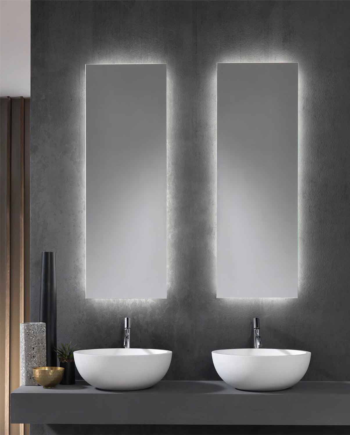 Pasqyrë moderne drejtkëndëshe e murit me dritë të pasme me dritë LED Prodhuar në Itali.