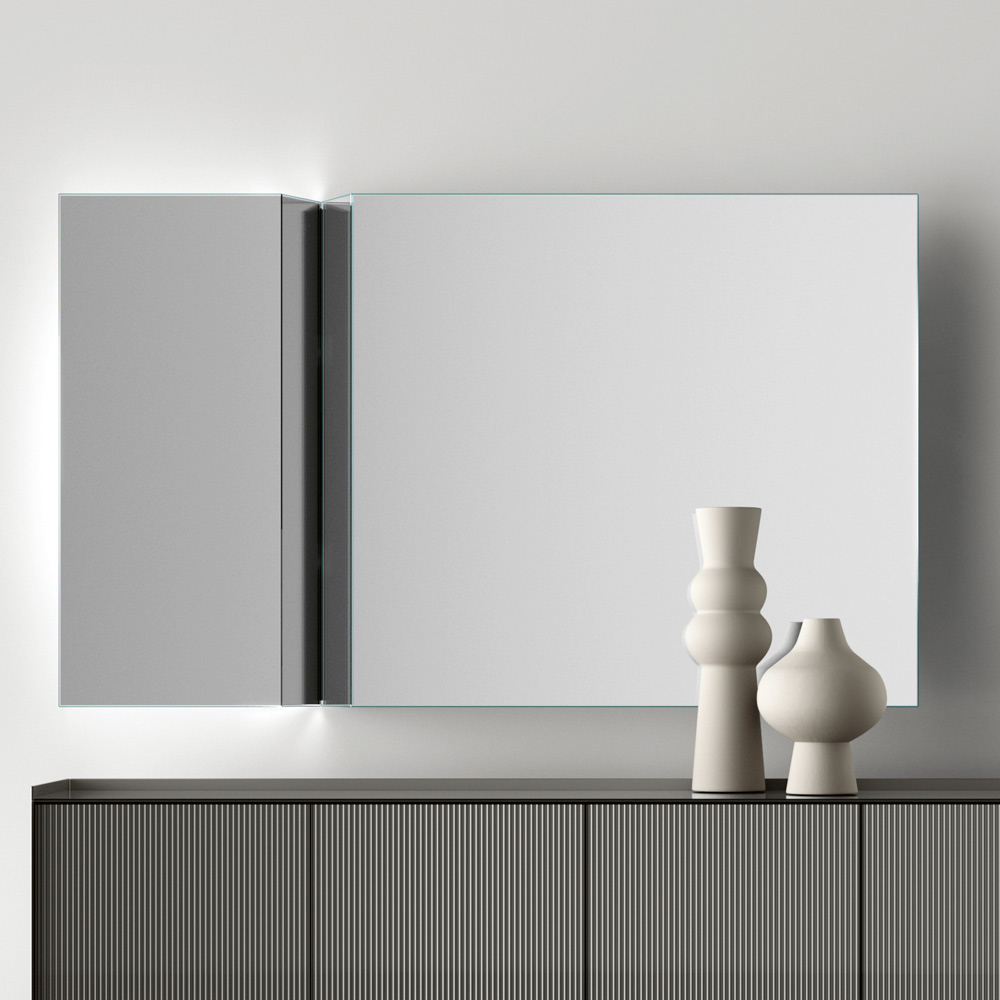 Struktura me dy pjesë nuk është vetëm tërheqëse vizualisht, por gjithashtu shton një dinamizëm unik vizual , duke e bërë çdo reflektim një vepër arti. Përdorimi i materialeve me cilësi të lartë siguron reflektim të qartë dhe të saktë, ndërsa montimi i fortë siguron qëndrueshmëri dhe stabilitet.