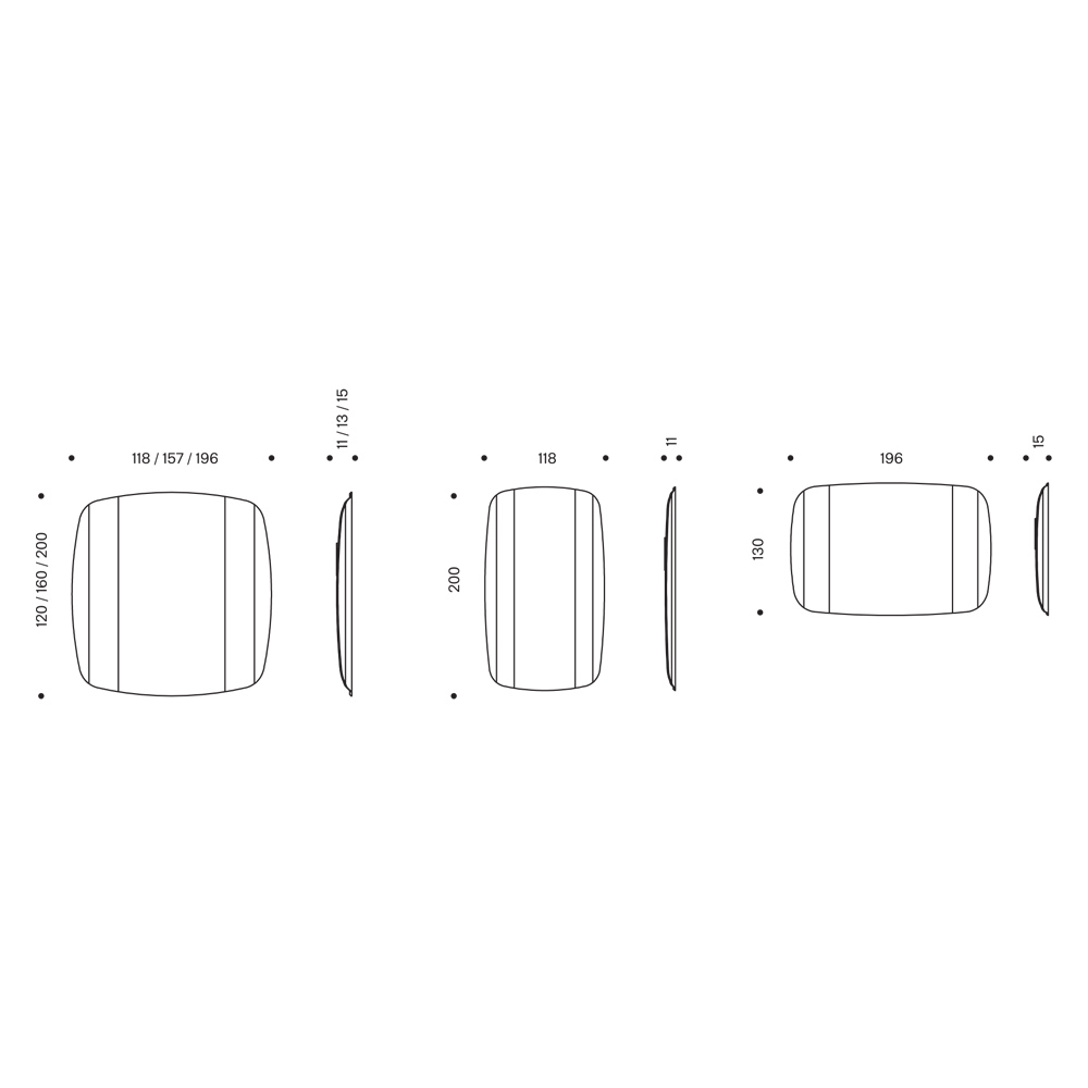 Gjatësia 196cm x Thellësia 15cm x Lartësia 130cm