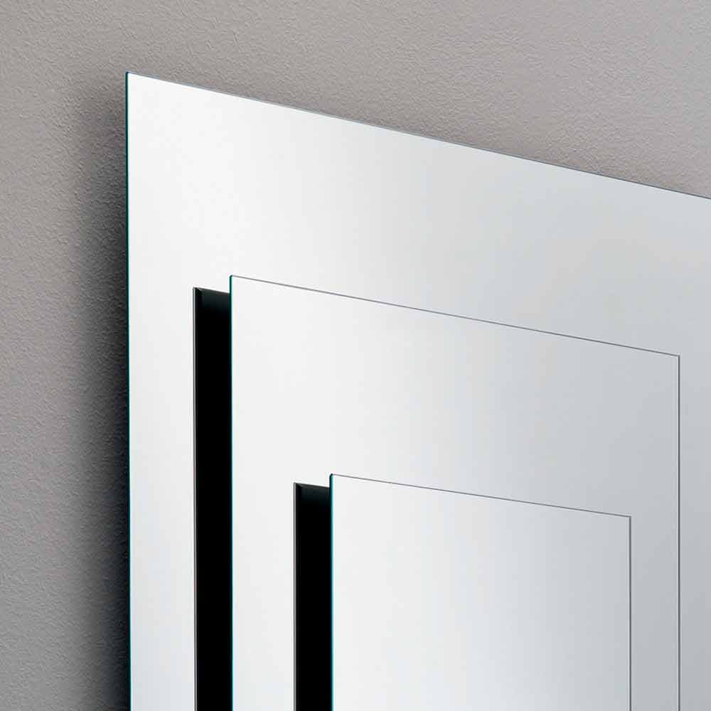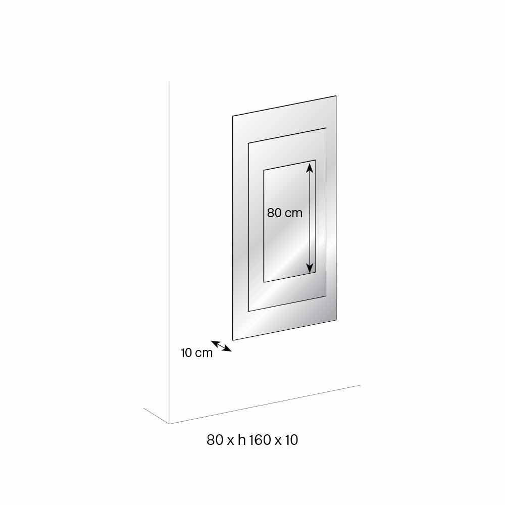 Kjo pasqyrë muri është e përbërë nga tre pllaka të mbivendosura dhe me hapësirë të mbështetur nga një strukturë e zezë prej druri .