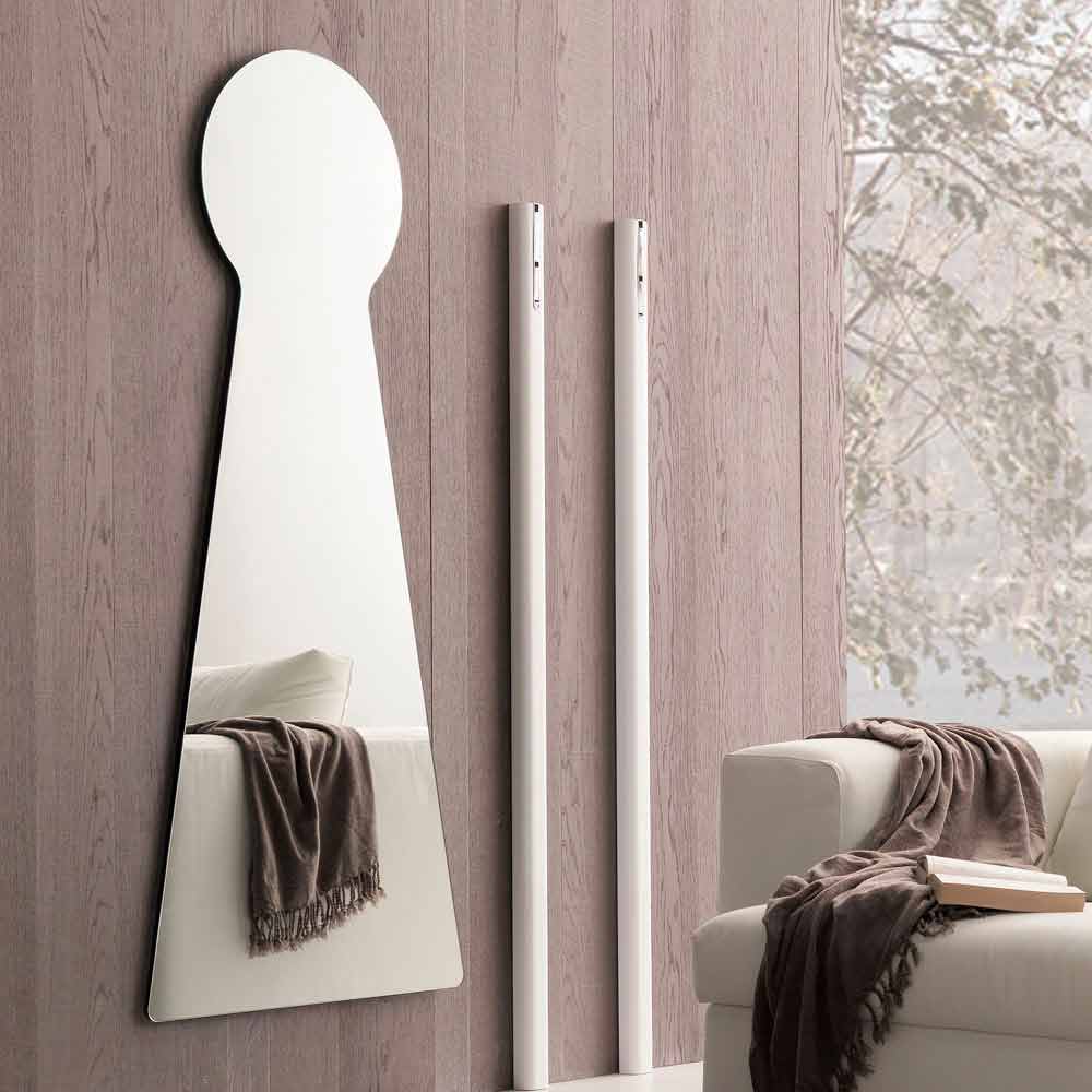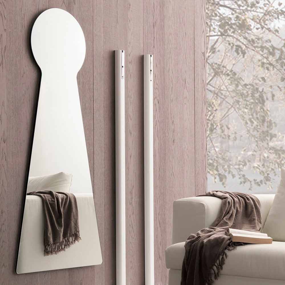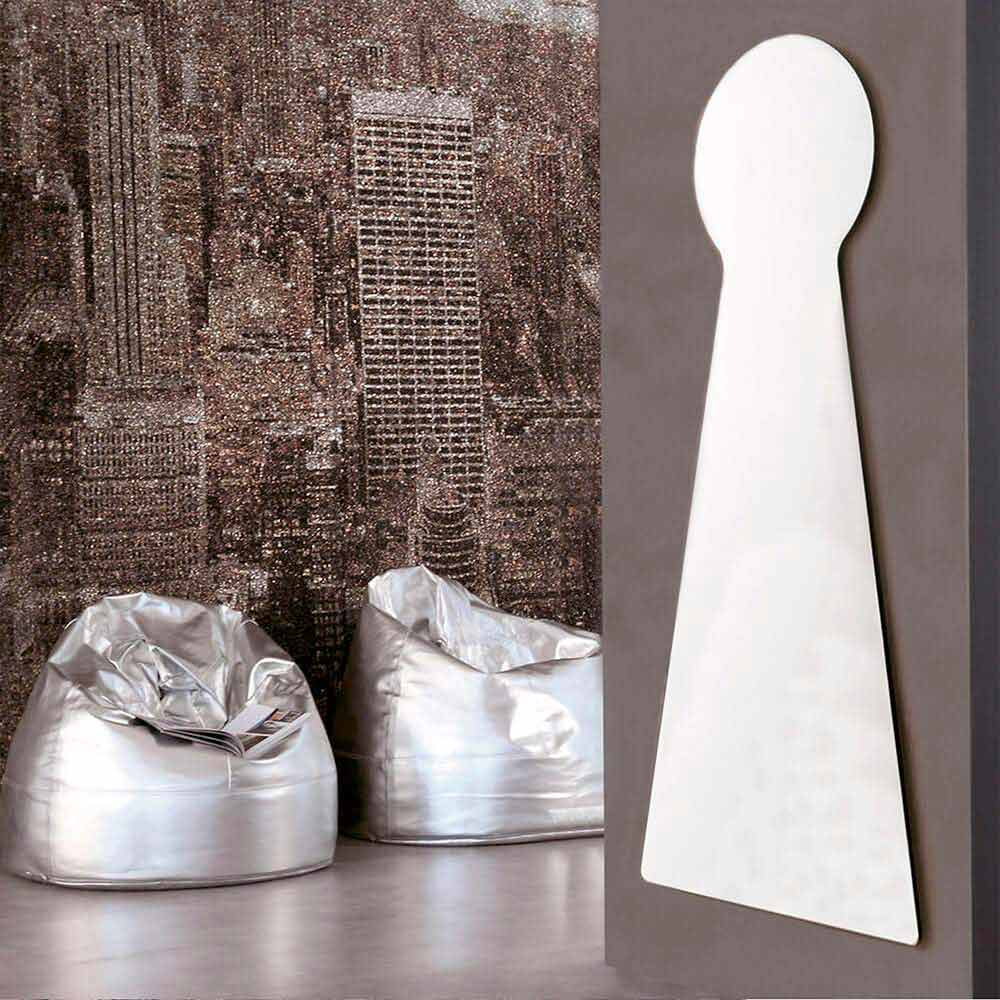 Pasqyrë muri në formë origjinale e prodhuar në Itali me panel pasqyre melamine. Kjo pjesë e mobiljeve ka një dizajn jashtëzakonisht krijues dhe avangardë dhe përshtatet në mënyrë të përsosur në çdo situatë moderne mobilimi brenda së cilës arrin të karakterizojë mjedisin, duke e bërë atë më të ndritshëm dhe më të gjerë. Dimensionet e saj imponuese e bëjnë atë një zgjedhje veçanërisht të përshtatshme për dhomat e mëdha me mure të mëdha që të mbushen me një prekje të personalitetit dhe stilit unik. Pasqyra përfaqëson një aksesor eklektik dhe veçanërisht të gjithanshëm , i aftë të transformojë dhe përmirësojë perceptimin e çdo mjedisi. Ai përfaqëson një element themelor që arrin të zmadhojë optikisht hapësirat, ndërsa në të njëjtën kohë vepron si një pikë e rëndësishme e dritës.