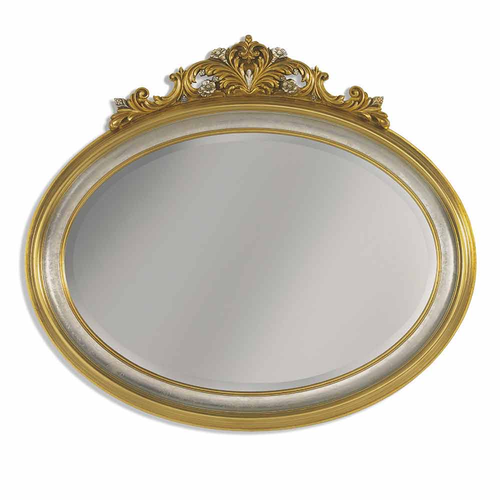 Kjo pasqyrë ovale është një haraç për pasurinë dhe detajet barok , një pjesë që rrezaton elegancë. Korniza është e gdhendur bukur me motive lulesh dhe rrotulla, duke krijuar një lojë dritëhijeje që rrëmben syrin dhe pasuron mjedisin.