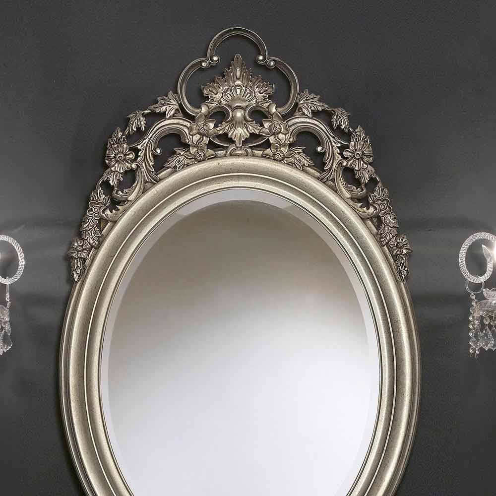 Kjo pasqyrë ovale është një haraç për pasurinë dhe detajet barok , një pjesë që rrezaton elegancë. Korniza është e gdhendur bukur me motive lulesh dhe rrotulla, duke krijuar një lojë dritëhijeje që rrëmben syrin dhe pasuron mjedisin.