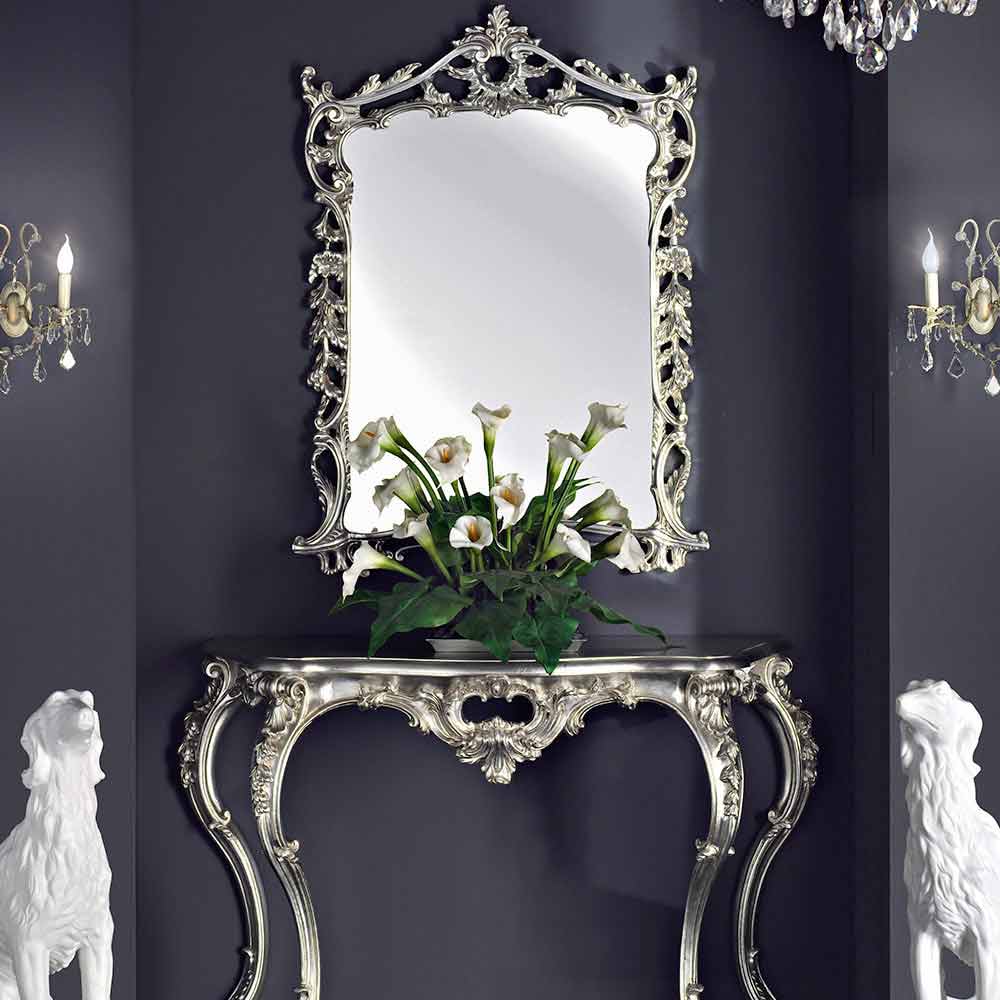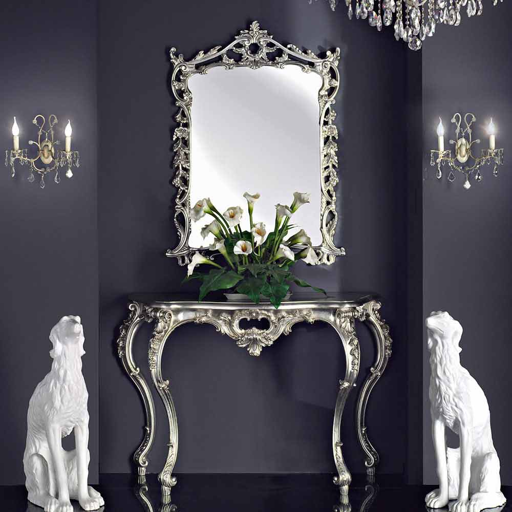 Shkëlqimi i dizajnit barok italian në këtë pasqyrë madhështore me tastierë. Çdo kthesë dhe friz është skalitur me mjeshtëri për të kapur dritën dhe për të magjepsur shikimin, duke e shndërruar pasqyrën në një vepër të vërtetë arti. Mbi tastierë, pasqyra jo vetëm që amplifikon hapësirën, por pasqyron edhe bukurinë e ambientit përreth.