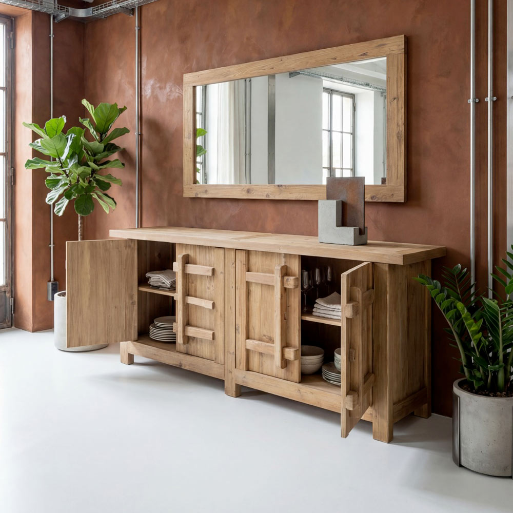 Kjo pasqyrë pishe natyrale e krehur dhe e vjetër është një mobilje e thjeshtë por mbresëlënëse, ideale për të përmirësuar hapësirat si hyrjet, dhomat e ndenjes ose dhomat e gjumit. Përfundimi i krehur thekson strukturën e drurit, duke nxjerrë në pah fibrat, nyjet dhe parregullsitë natyrore të tij.