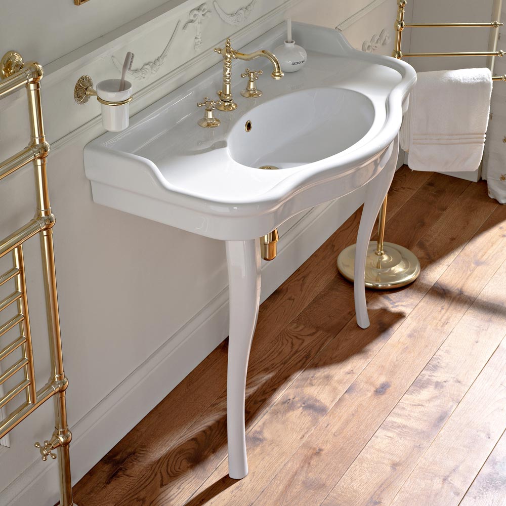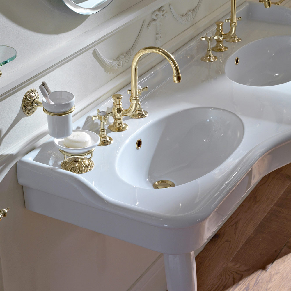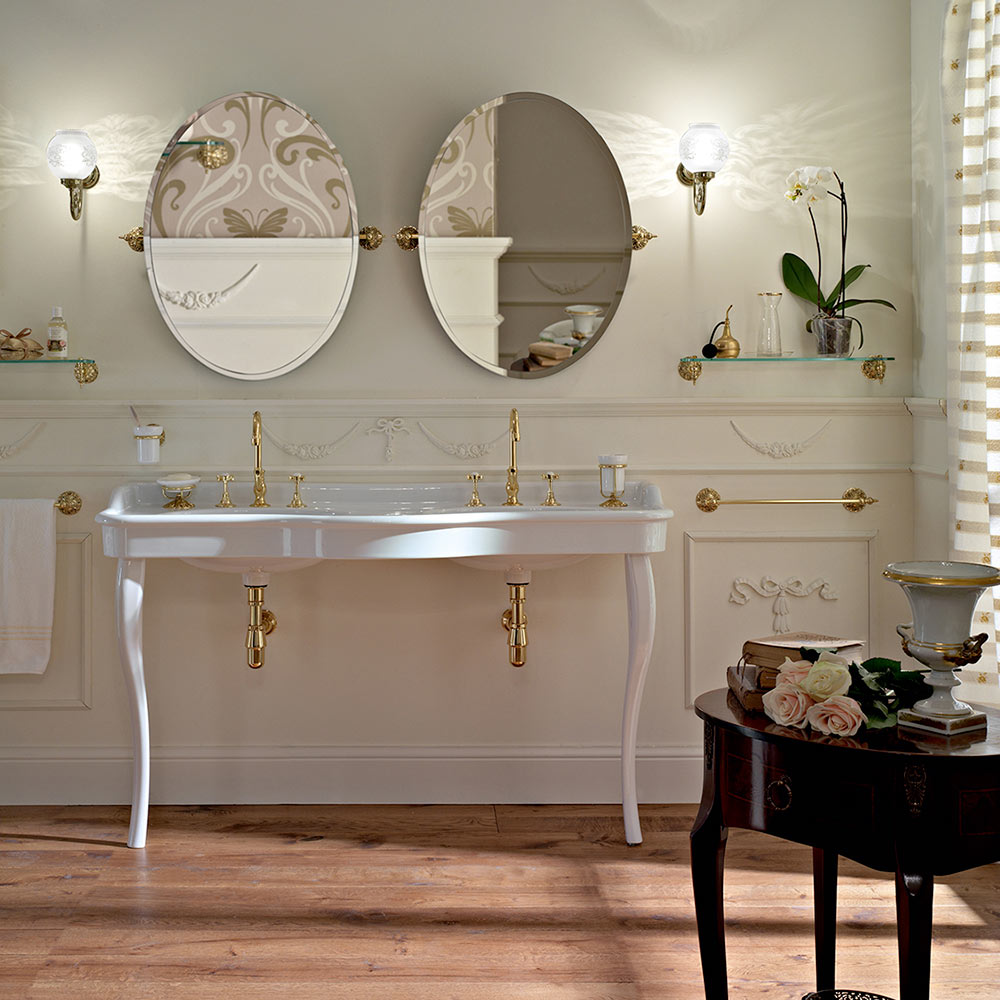Konzoll i rrobave për banjë me një legen të dyfishtë në qeramikë të bardhë Paulina, e bërë në Itali