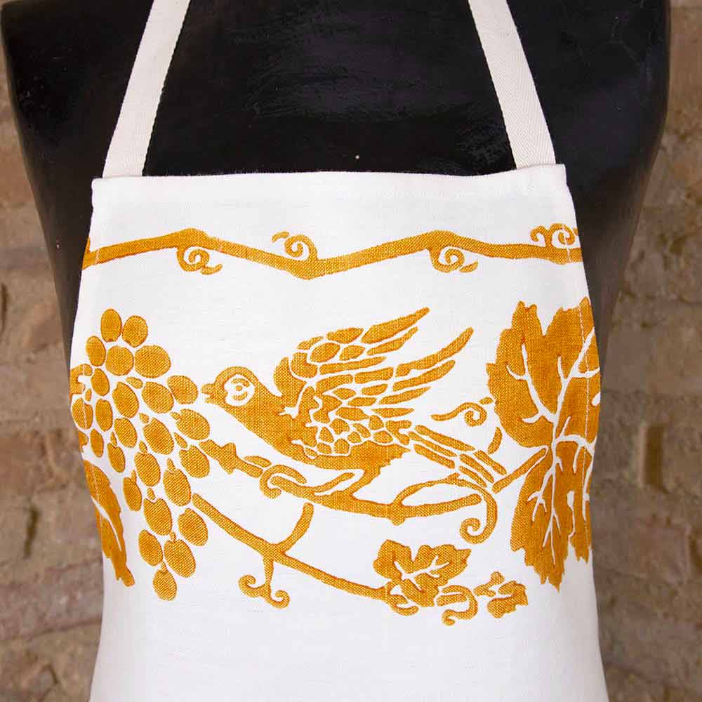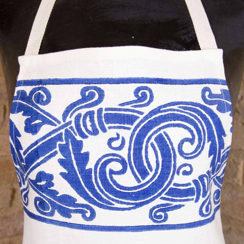 Pallua kuzhine me bib dhe xhepa të artizanatit të lartë në liri të pastër me dizajn arti të lashtë të shtypur me dorë, të disponueshme në tre variante, pjesë unike me cilësi italiane.