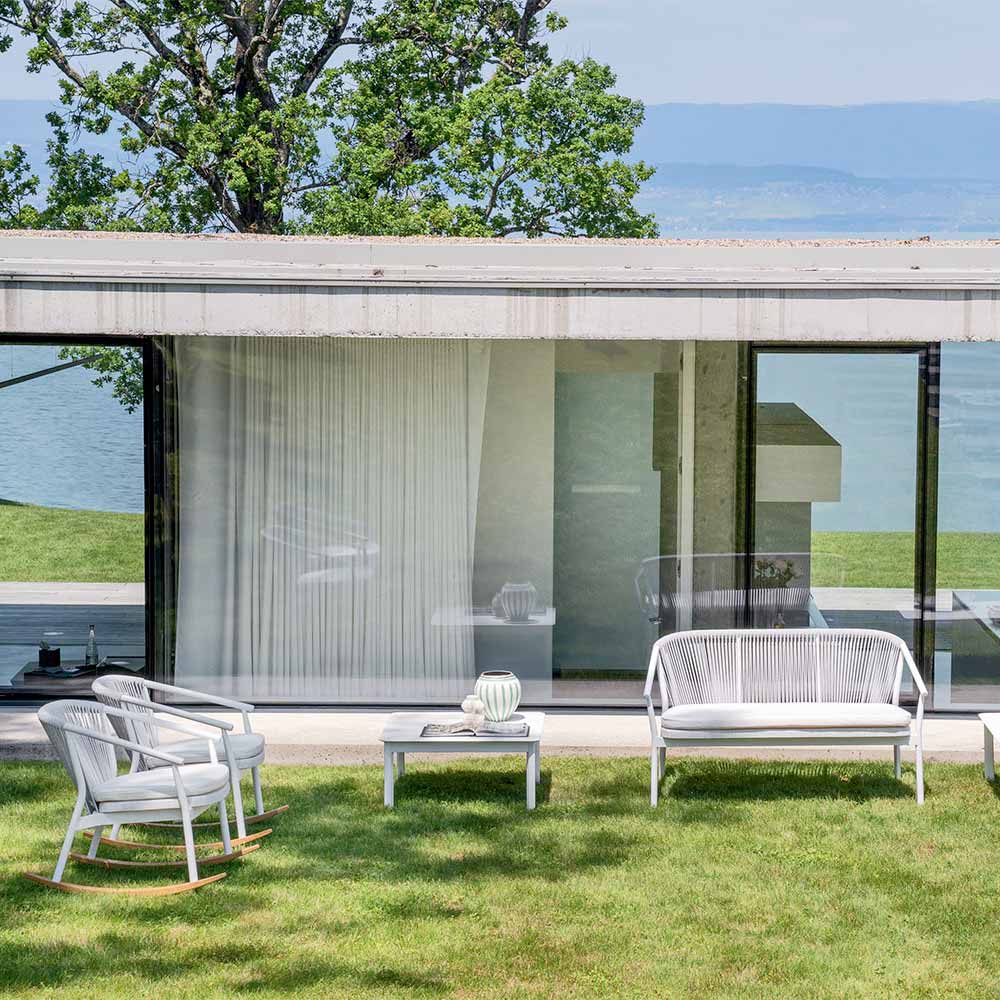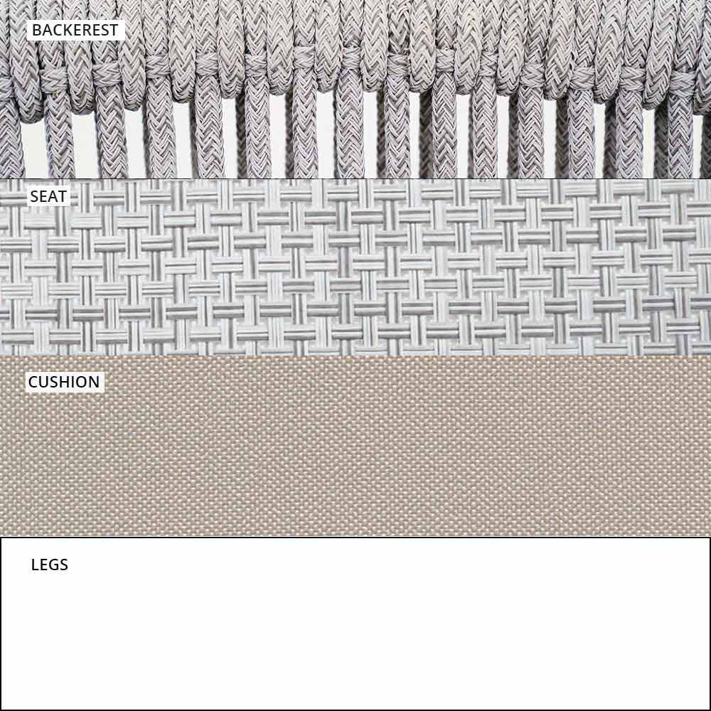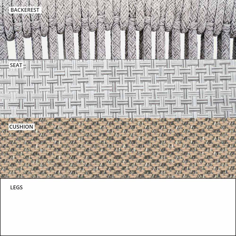 Gërshetimi i mbështetëses në kordonin sintetik VAR # TEX rrit estetikën e kësaj divan të krijuar për të shijuar ditët në natyrë në shoqëri.