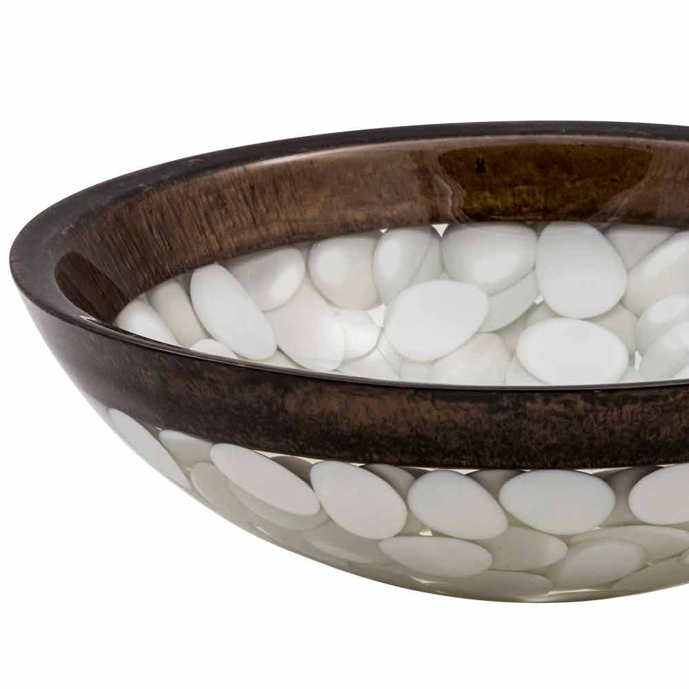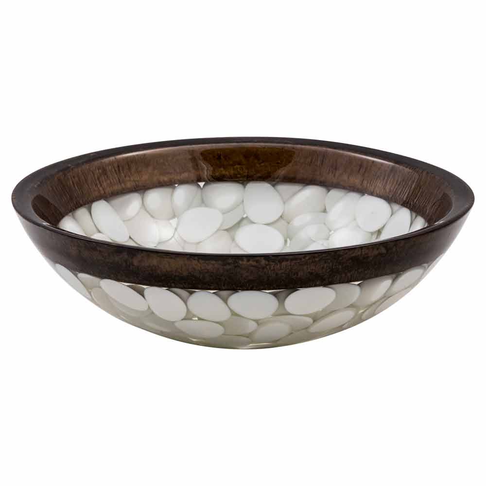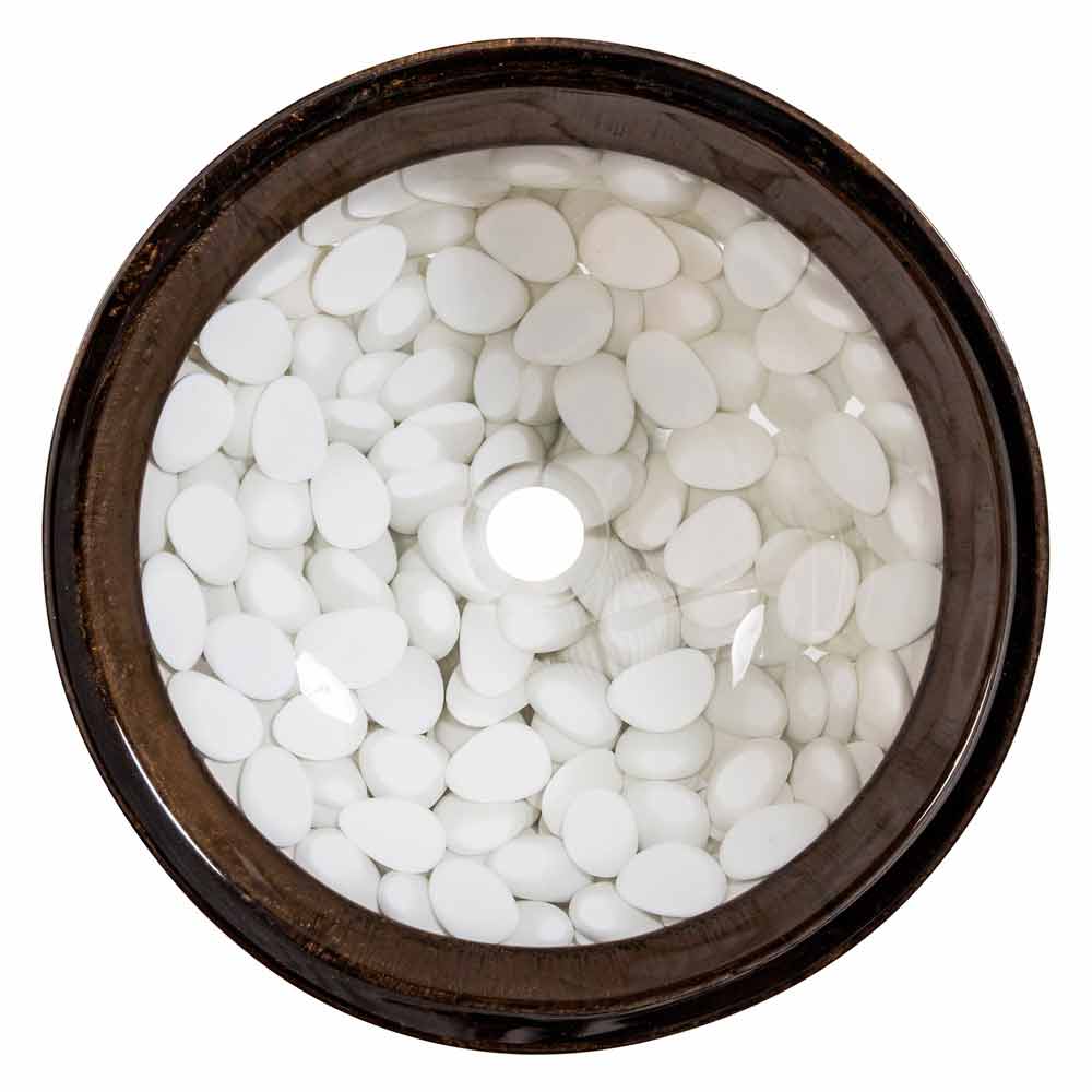 Buguggiate është një lavaman i shkëlqyeshëm countertop i rrumbullakët i bërë me dorë me një rrëshirë artificiale me cilësi të lartë, brenda së cilës montohen gurët.