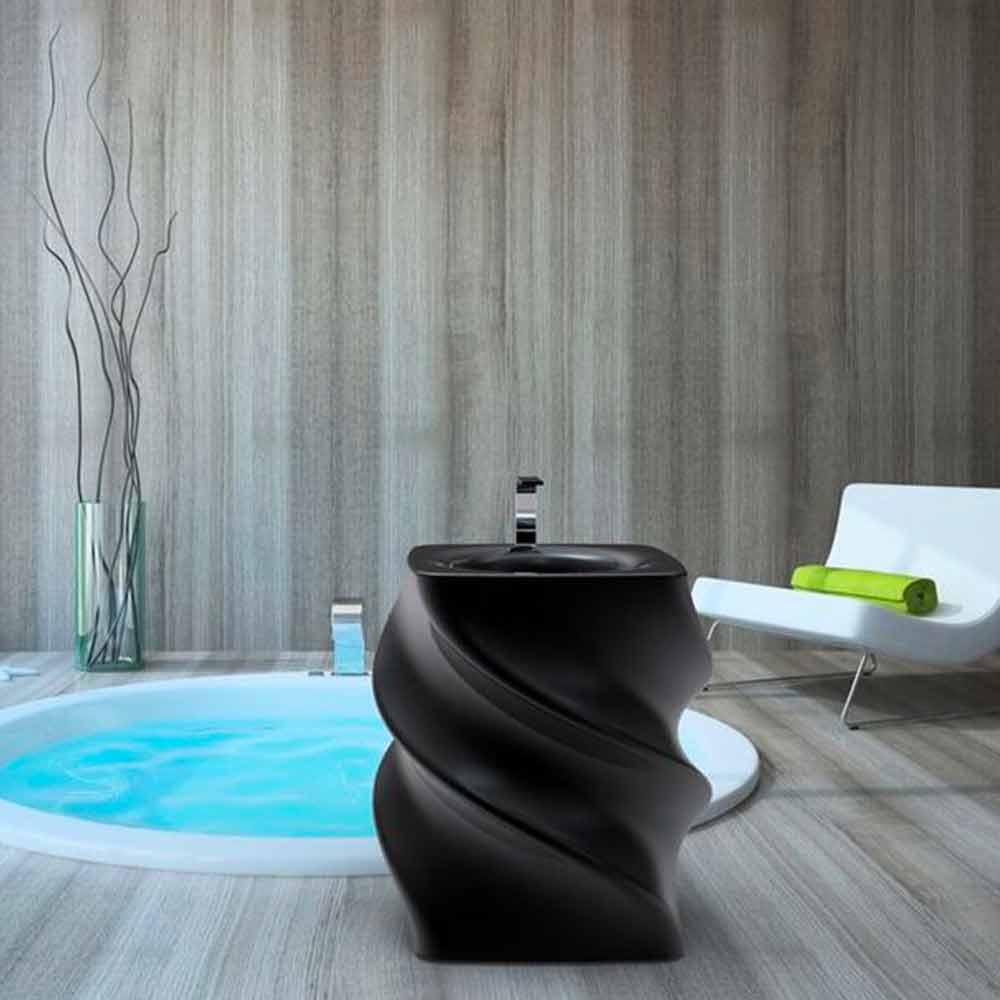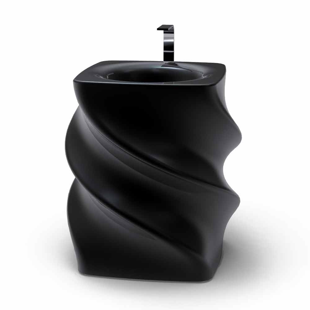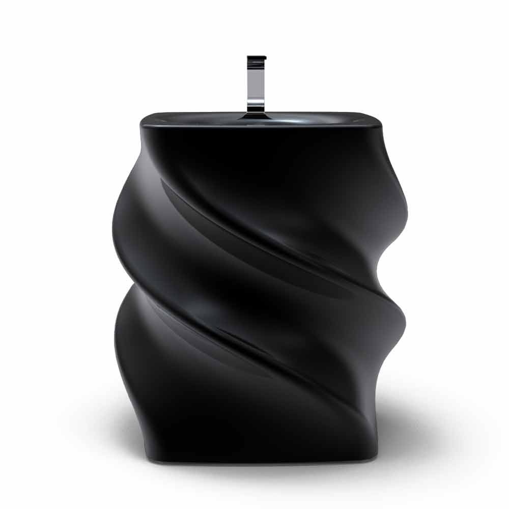 Lavaman i zi i pavarur, dizajn modern Twist i prodhuar në Itali Materiali : Sipërfaqja e ngurtë; Fini : Shkëlqim / mat në ngjyrë të zezë Projektuesi : Sabino Ferrante Përmasat : L. 79 x P. 79 x H. 85 cm Pesha : 17 kg
