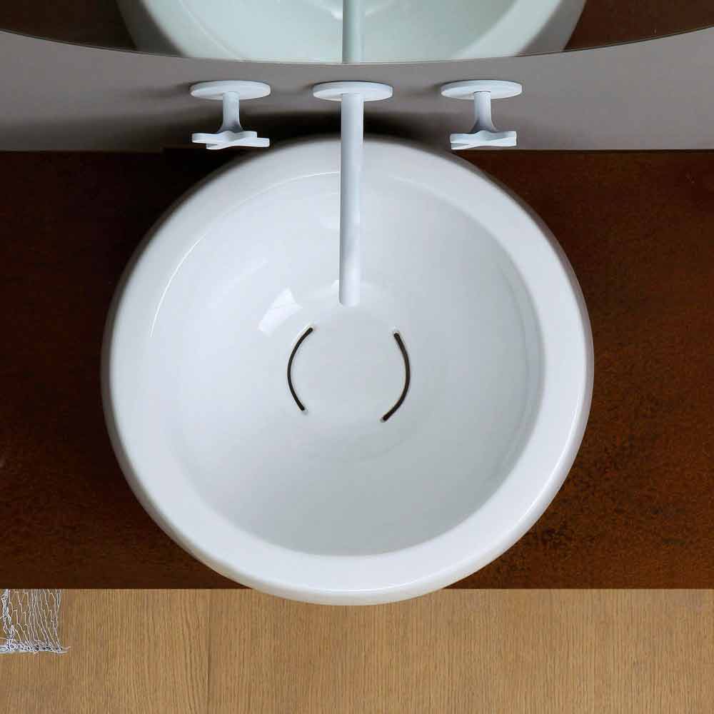 Lavaman tavoline qeramike me dizajn rrethor të prodhuar në Itali Elisa Elisa përmban kujtime dhe shije të Afrikës, me një formë rrethore dhe një skaj të rëndësishëm kantilor. Prerja e dyfishtë e kullimit lejon rrjedhjen e vazhdueshme të ujit.