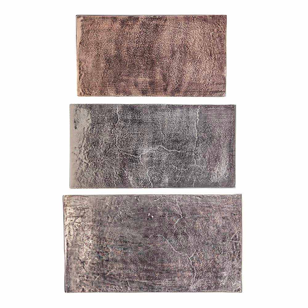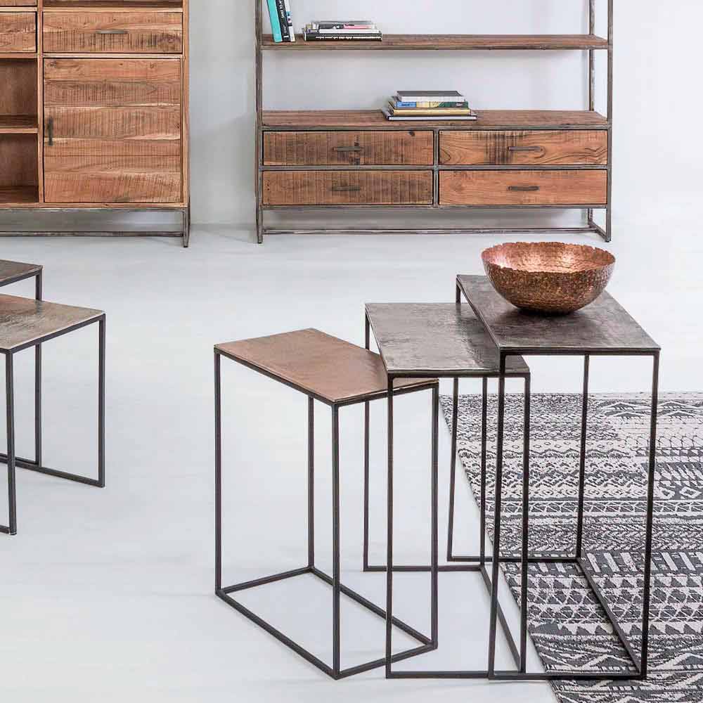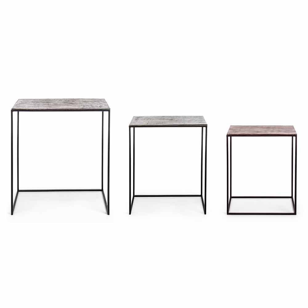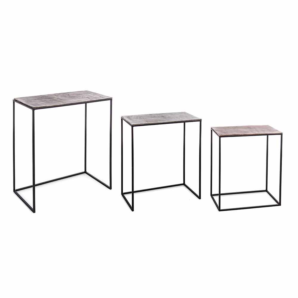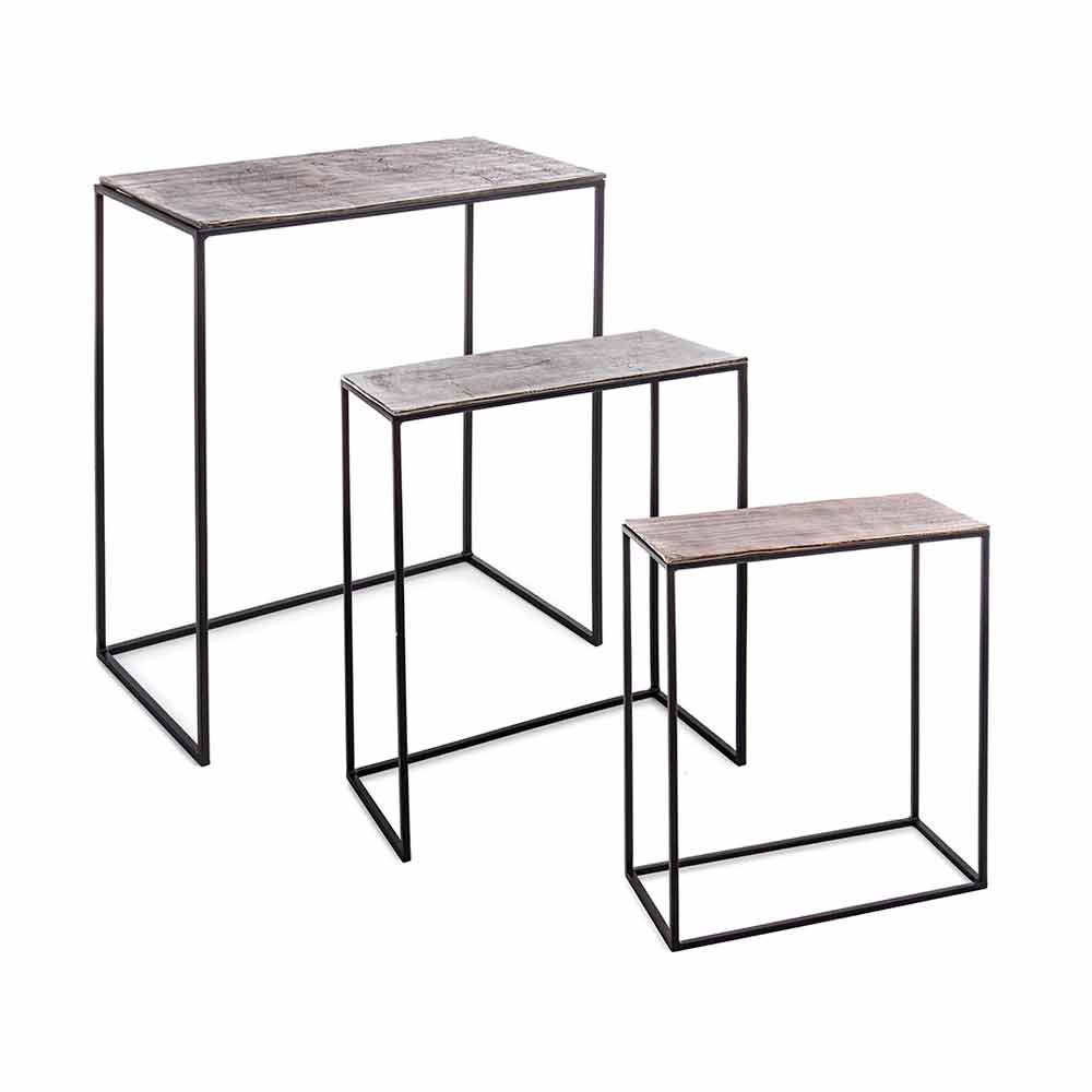 Përbërja e 3 tavolinave kafe drejtkëndëshe në alumin dhe çelik.