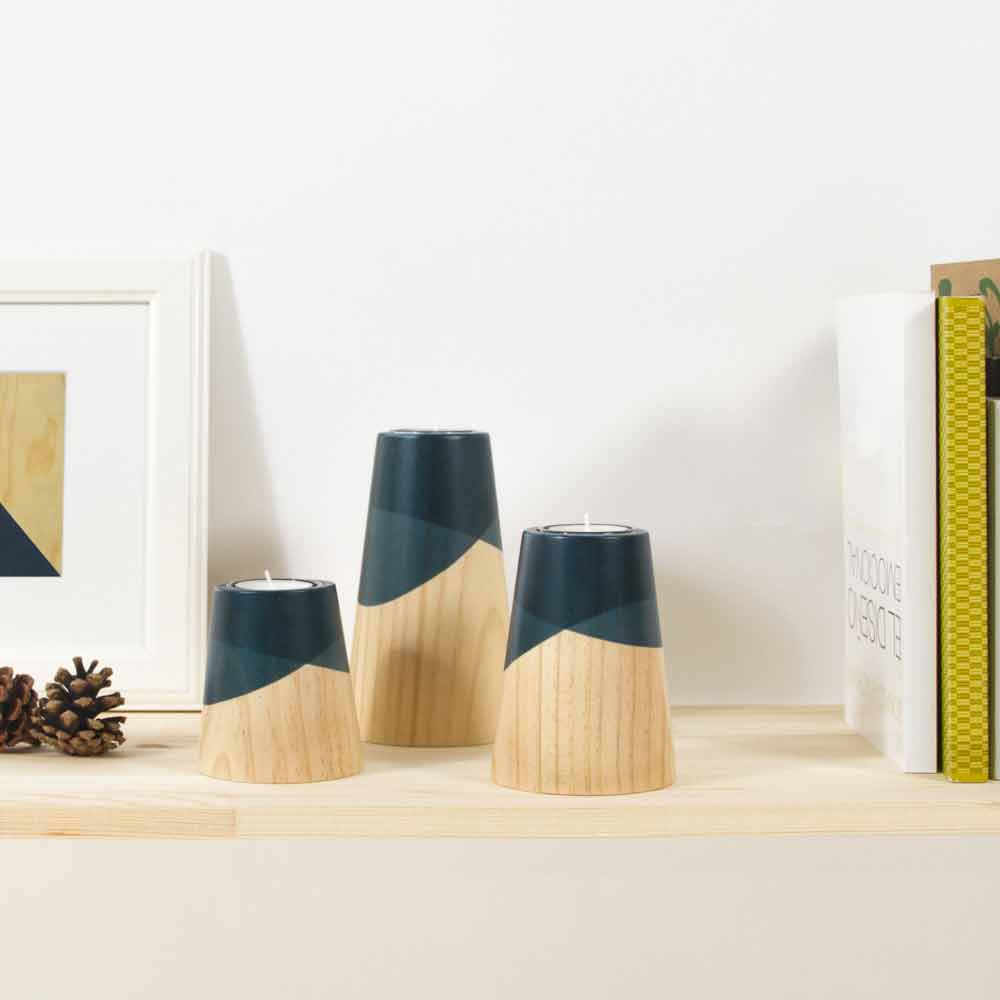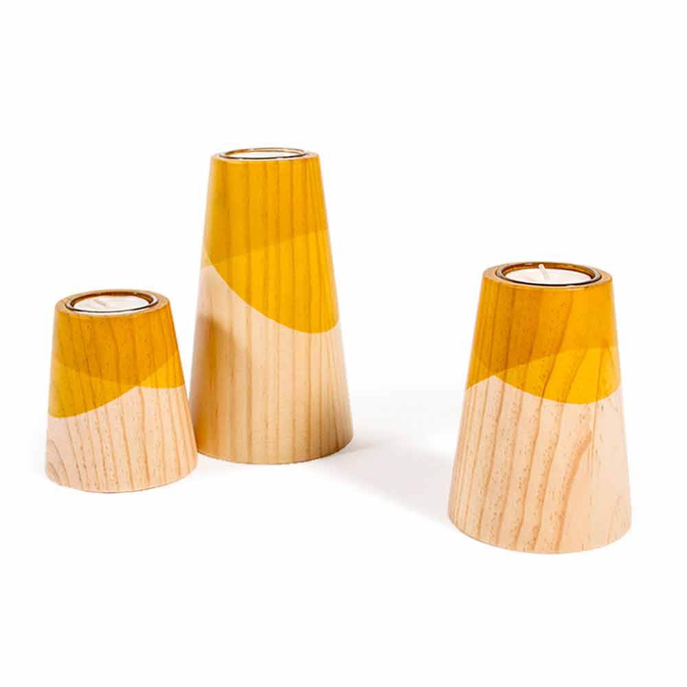 3 mbajtësve të qirinjve në formë konike të bërë