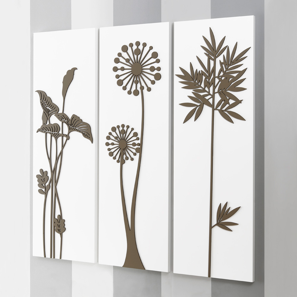 Përbërja e paneleve është bërë duke përdorur teknikën e shënjimit me laser e cila krijon një reliev në material, duke krijuar shkallëzime të ndryshme të ngjyrave të krijuara në panel. Paneli është prej druri të bardhë të llakuar me dekorim gri pëllumb . Ai përfaqëson lule dhe gjethe të stilizuara, të cilat krijojnë një treshe thelbësore panelesh.