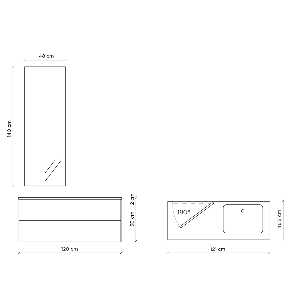 Dimensionet: Baza: L 120cm x D 46,5cm x Lartë 52cm Pasqyra: H 140cm x L 48cm
