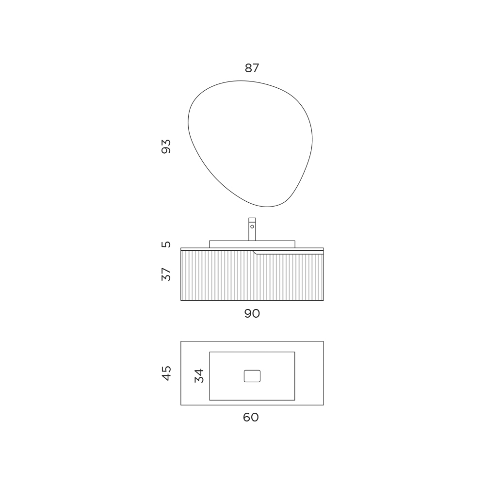 Lavaman: Gjatësia 60 x Thellësia 34 x Lartësia 15.7 cm