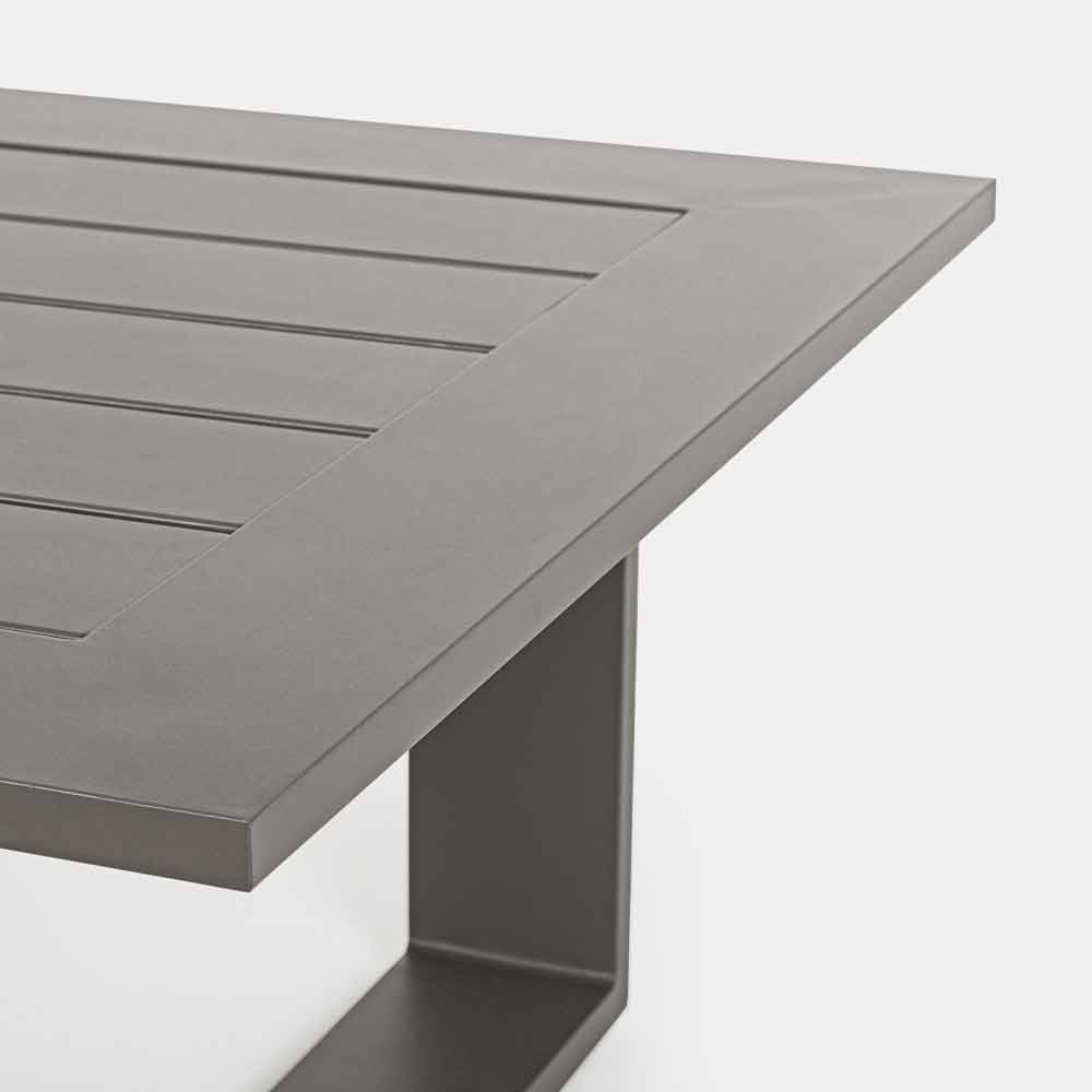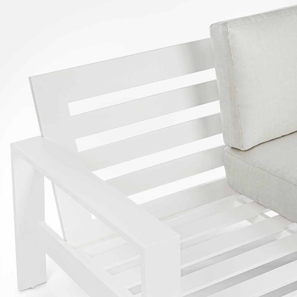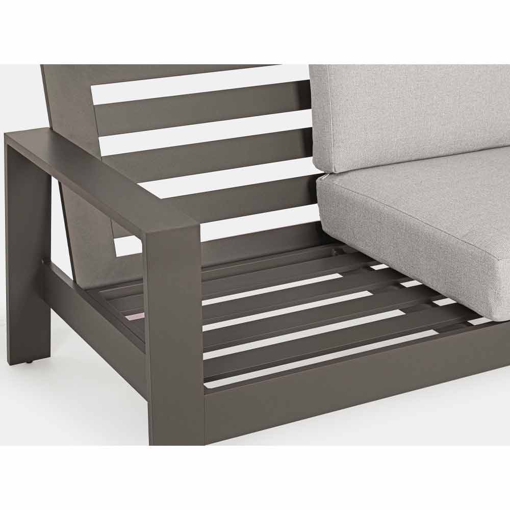 Struktura alumini e veshur me pluhur (poliester). Jastëkët e sediljes dhe mbrapa me mbulesa të lëvizshme me pëlhurë olefin (100% polipropilen). Këmbë të rregullueshme. Vida çeliku inox. Për tu mbledhur.