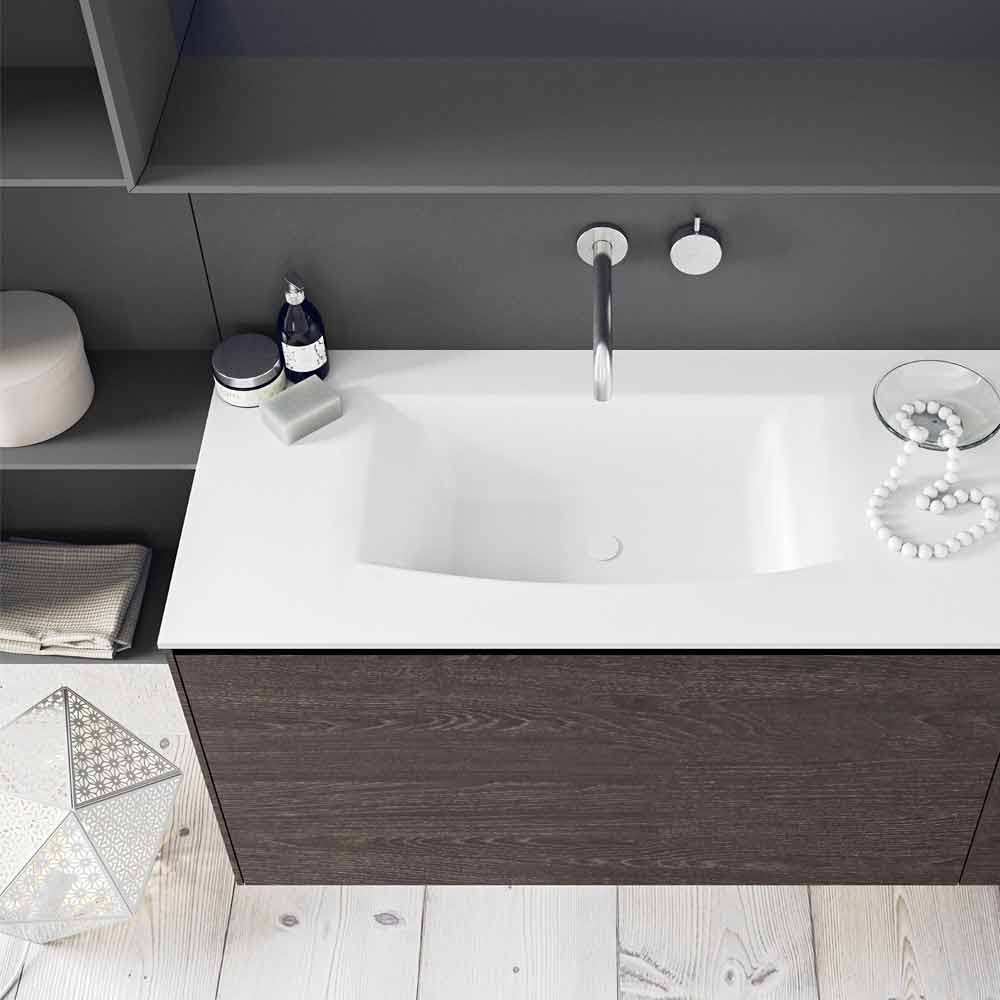 Skena përmbyllet nga lavamani i integruar i karakterizuar nga dy anët anësore që zbresin butësisht drejt pellgut.