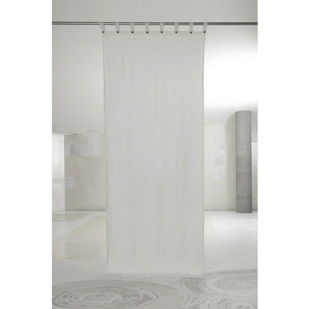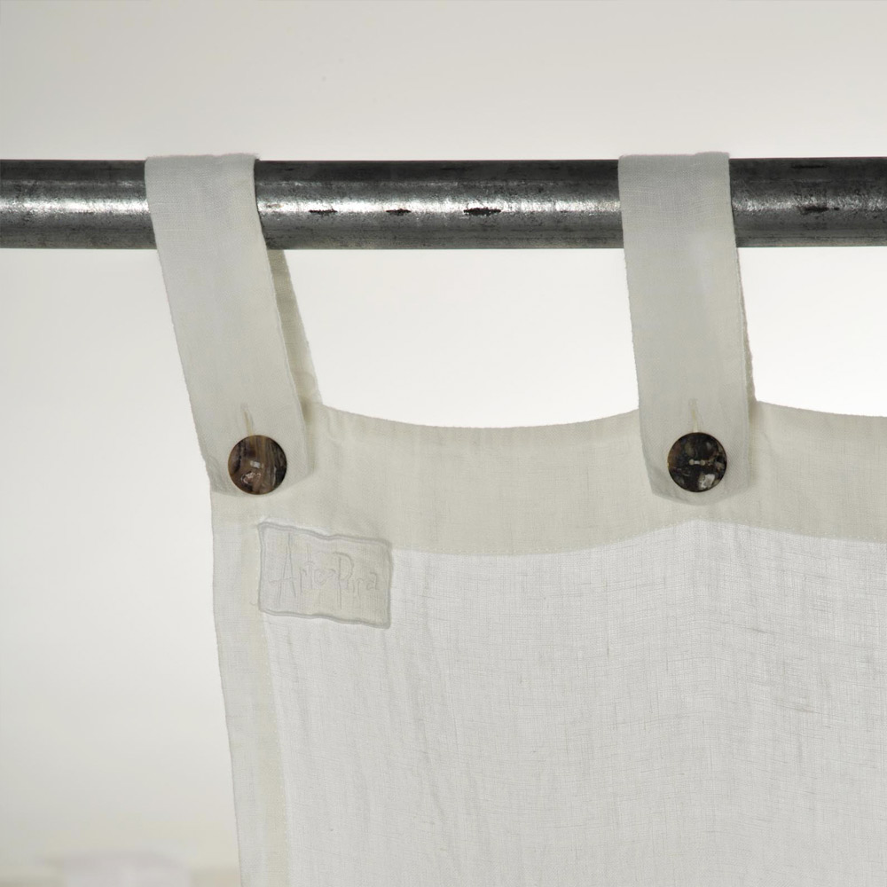Perde e bardhë e rëndë prej liri me fiksim butoni nënë-perla, cilësi e punuar me dorë e prodhuar në Itali.