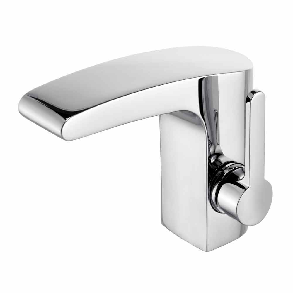 Mikser modern i lavamanit të banjës me një levë të vetme prej bronzi me fund kromi .