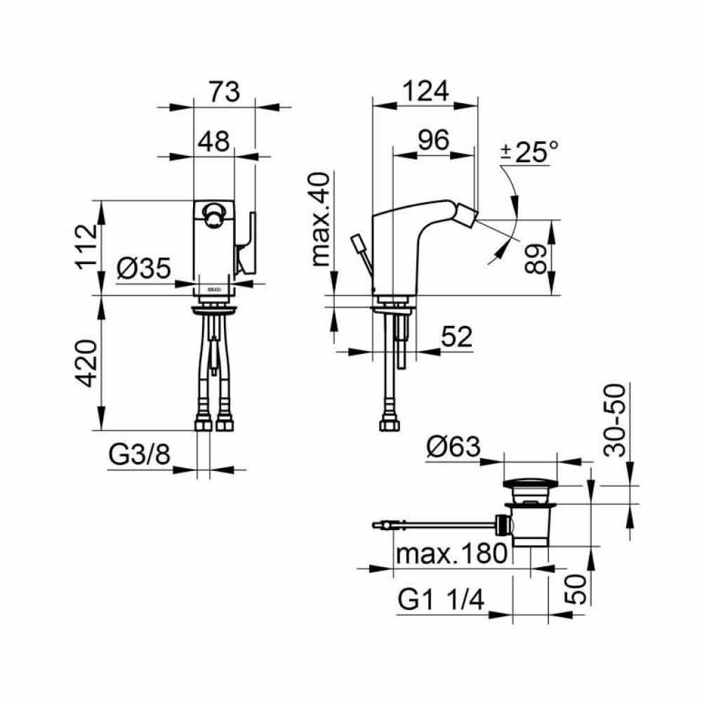 Bidet tap moderne në krom-kromuar bronzi me mbeturina pop -up.