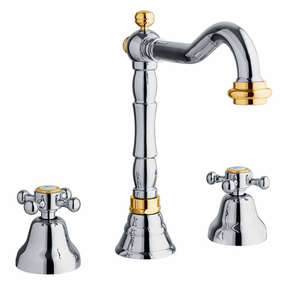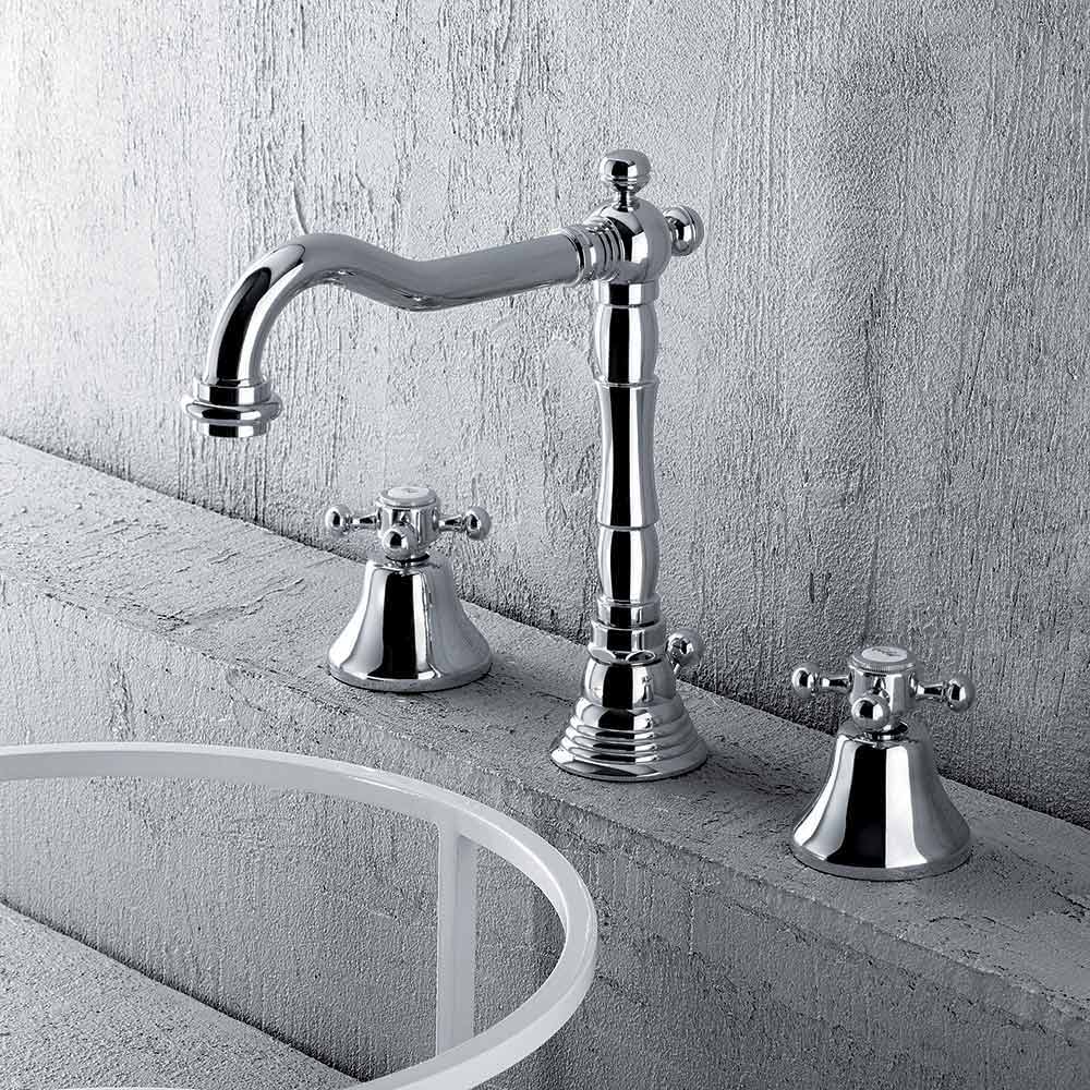 Mikser me 3 vrima për lavaman banjo me dizajn klasik në bronz të kromuar Prodhuar në Itali.