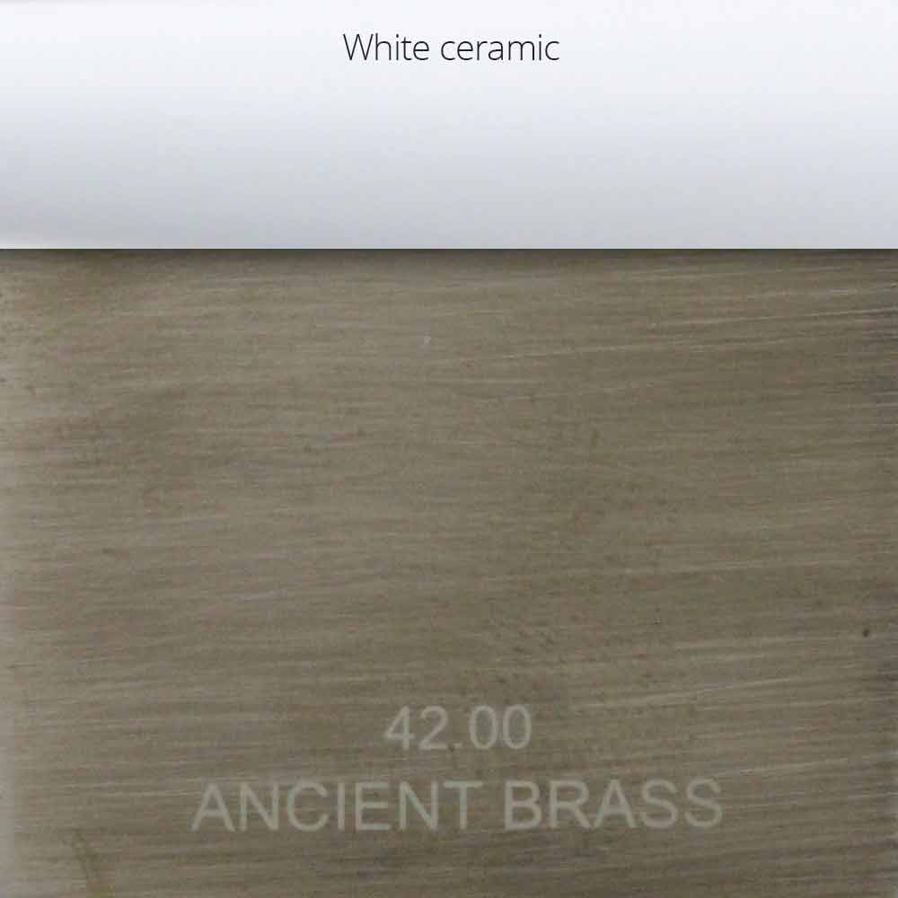 Tunxh antik: përfundim bronzi antik i krehur me mat me futje të bardhë qeramike në doreza;