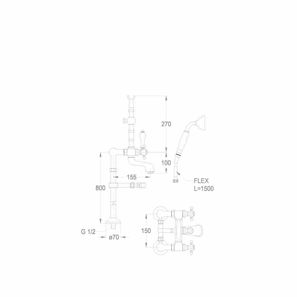 Përzierësi i ekspozuar i banjës në kolonat e dyshemesë me devijues dhe dush dupleks dore Prodhuar në Itali.