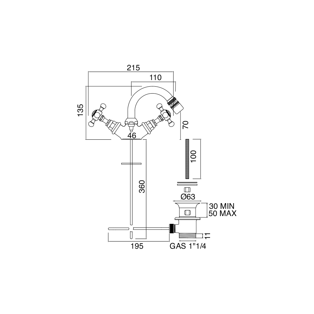 Mikser bidete me një vrima të dizajnit vintage në tunxh prodhim Itali, Elisea.