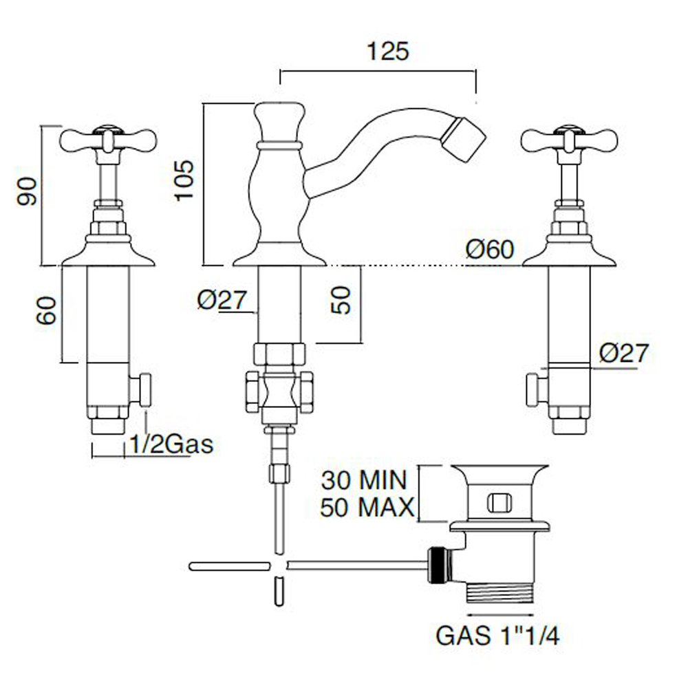 rubinet i rafinuar i legenit për lavaman me 3 vrima me kullues è tërësisht