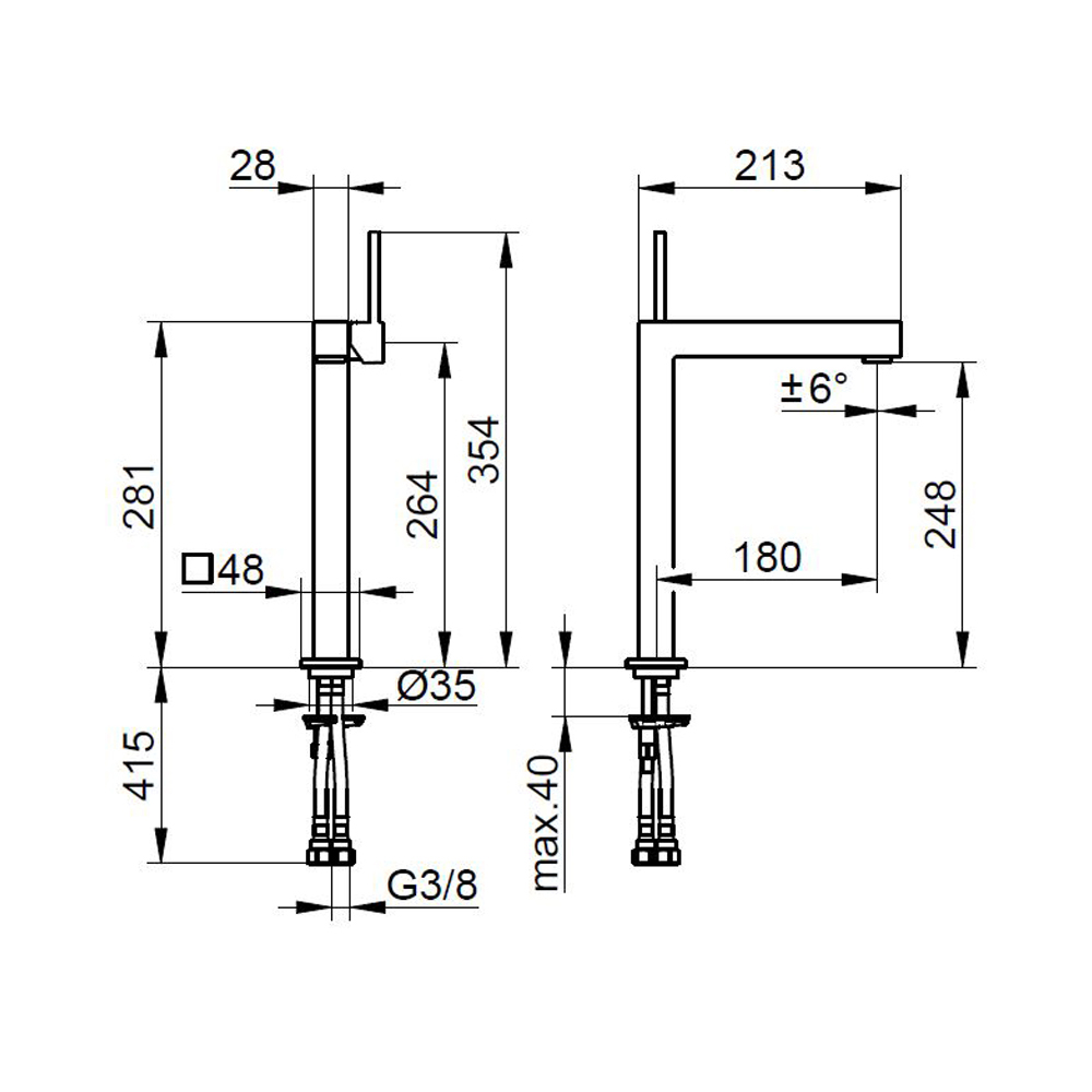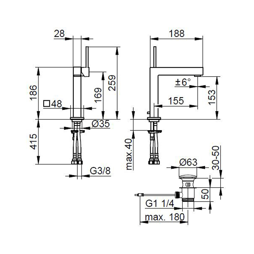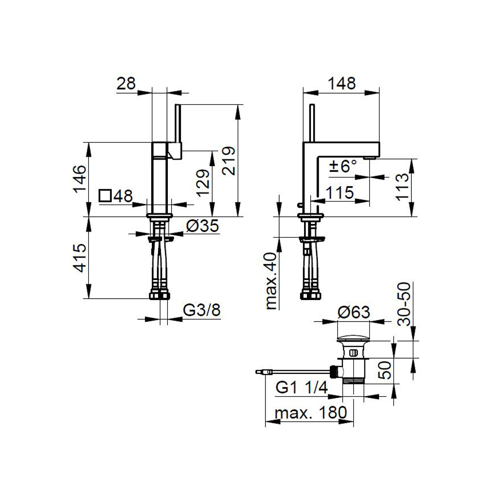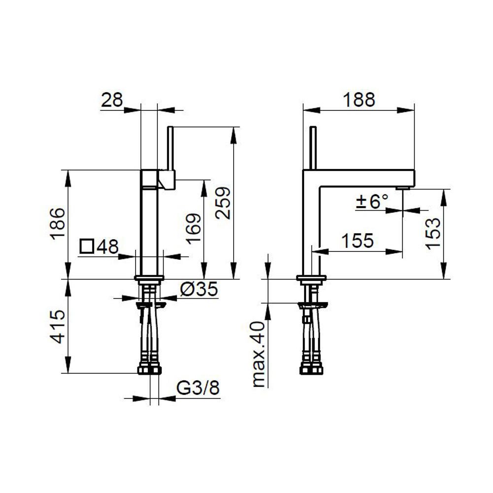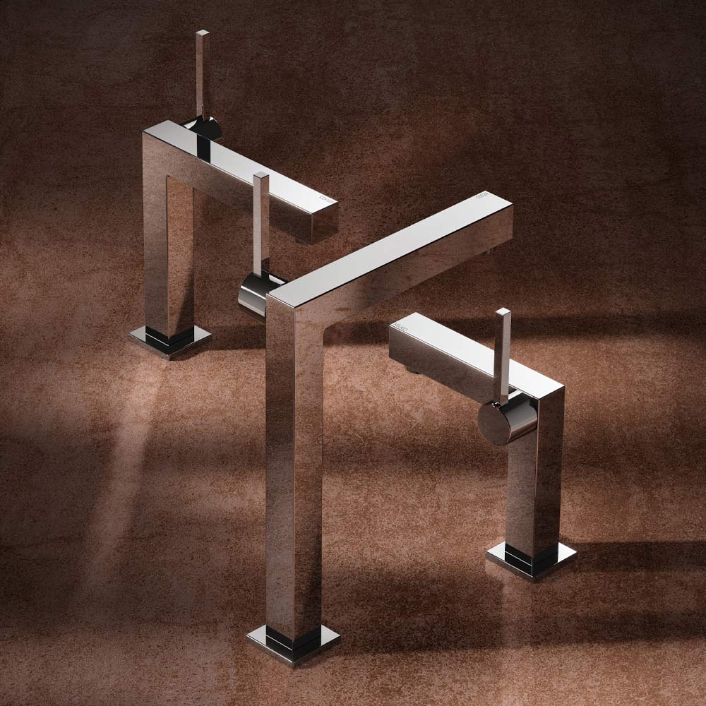 Ky mikser legeni me një levë ka një dizajn katror në elementë katrorë të disponueshëm në 3 madhësi të ndryshme. Është një rubinet me linja gjeometrike tëpastra dhe thelbësore prej bronzi të kromuar me materiale cilësore.