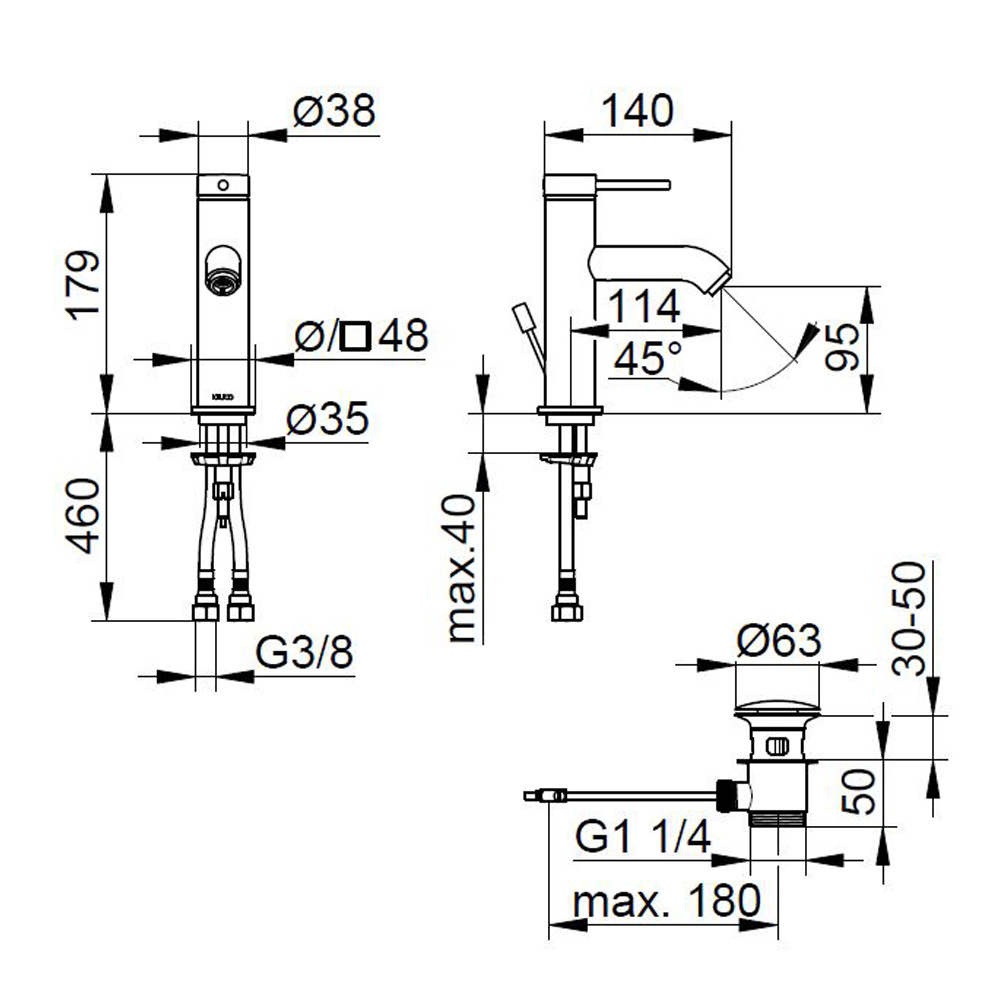 me ose pa mbeturina pop-up 1 1/4 inç;