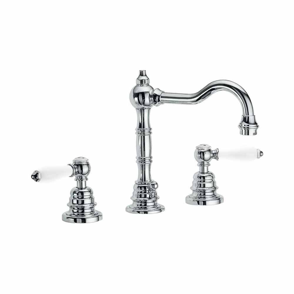 Mikser lavamani countertop në bronz të përfunduar me krom me një dizajn jashtëzakonisht klasik 205 mm të lartë dhe me një distancë qendrore 170 mm, i kompletuar me kullues dhe levë pop-up. Prodhuar tërësisht në Itali me materiale me cilësi të lartë në përputhje me standardet evropiane. Ky mikser mund të instalohet në pjesën e sipërme, i pajisur me një aerator dhe kokë qeramike 90 °; rekomandohet për sistemin e tij të Kursimit të Energjisë për kursimin e ujit prej 6L / min dhe grykën e tij të kthyeshme.