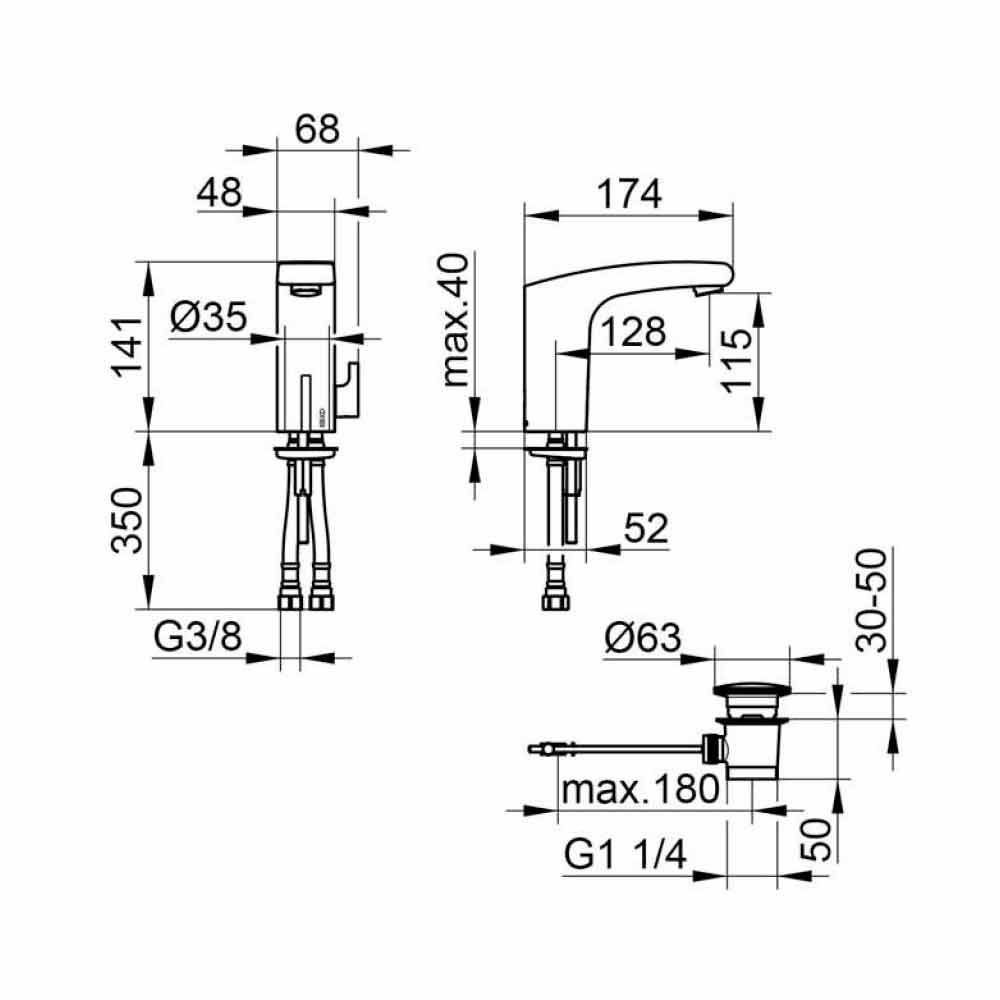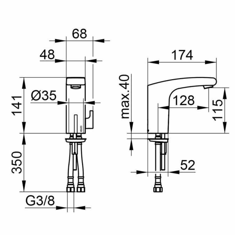 Modern banjo lavaman tap bërë prej bronzi me krom përfundojë dhe të pajisur me një sensor infra të kuqe praktike.