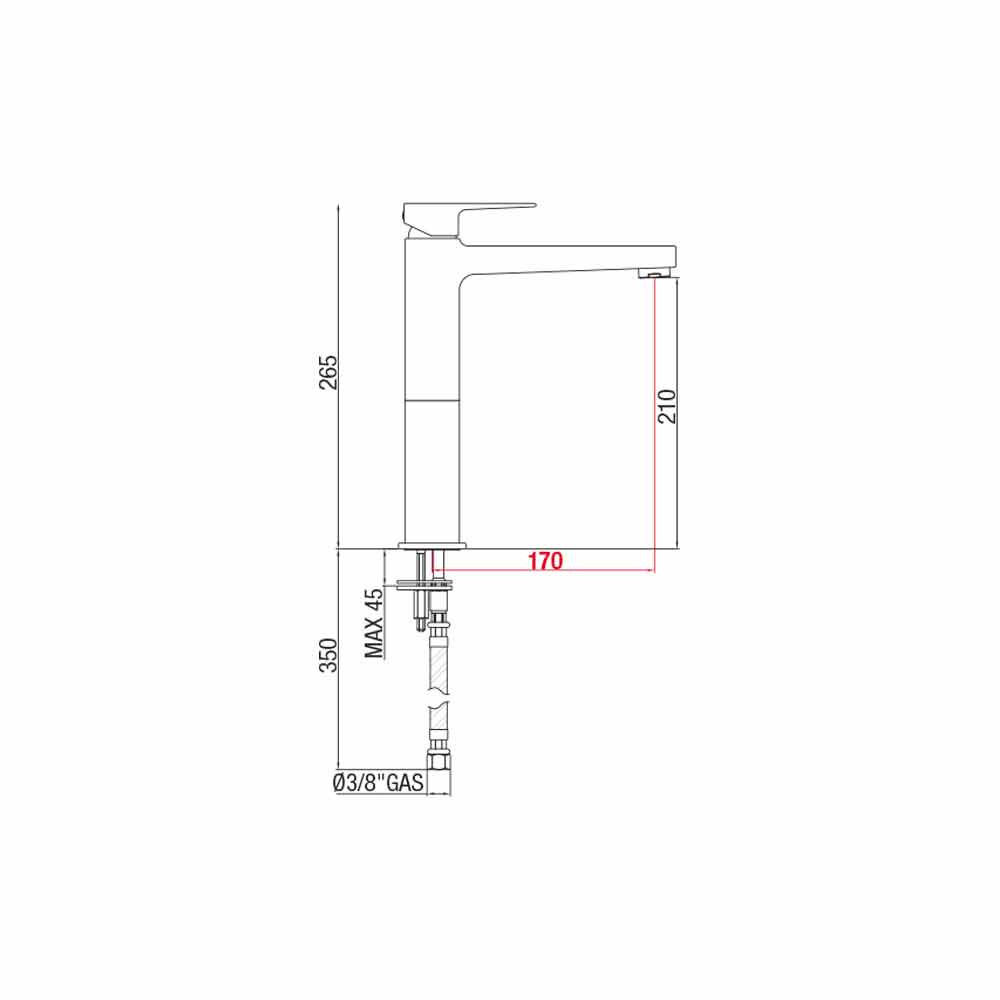 Masa : H 210 mm (lartësia totale 265 mm)