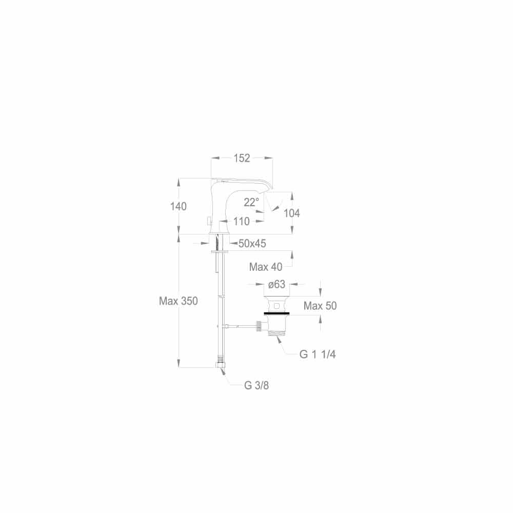 Mikser me lavaman countertop me dizajn ultramodern në fund të kromit prej bronzi të lartë 140 mm dhe me një distancë qendrore 110 mm. Prodhuar tërësisht në Itali me materiale me cilësi të lartë në përputhje me standardet evropiane. Ky mikser parashikon instalimin në dysheme, të pajisur me aerator cache dhe fishek disk qeramik; rekomandohet për sistemin e tij të Kursimit të Energjisë për kursimin e ujit prej 6L / min dhe për lidhjet e tij fleksibile.